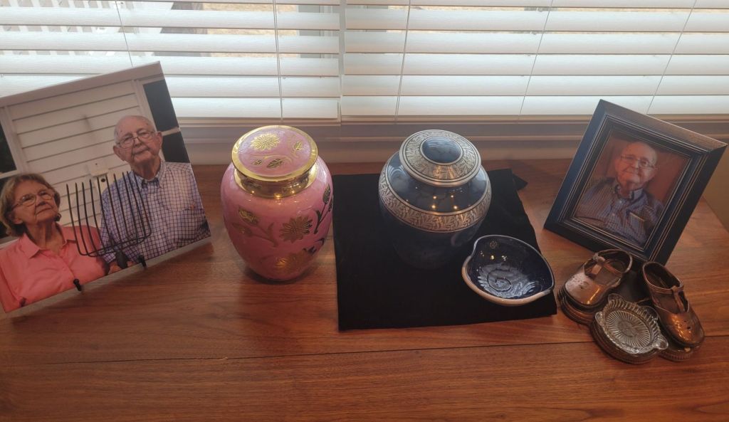 For now, I will sit quietly with the blue and pink urns while I remember my parents. I am not ready to let the ashes go.
