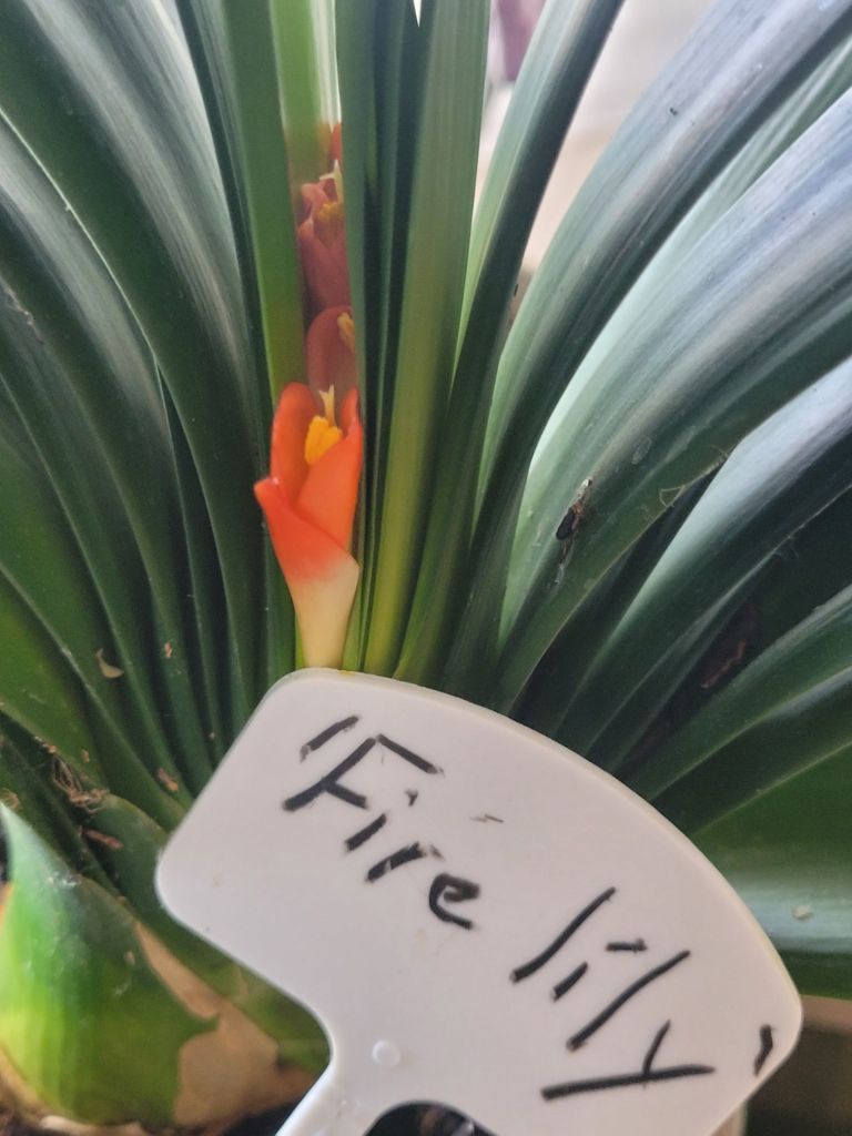 Bummer. I have done too much hovering again. My ‘Fire Lily’ orange Clivia has squealed on my overzealous mothering by putting up a short stalk with only two flowers.