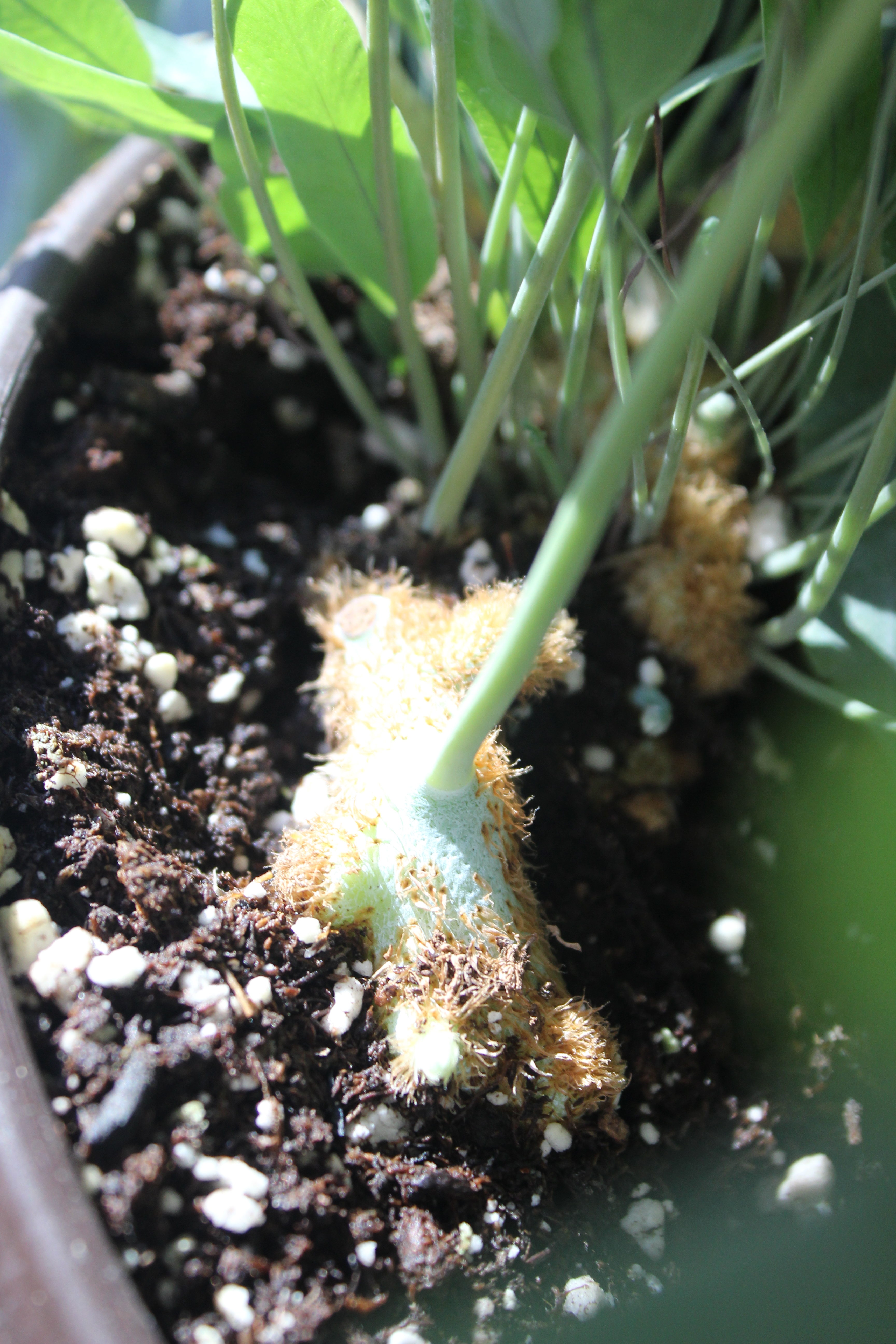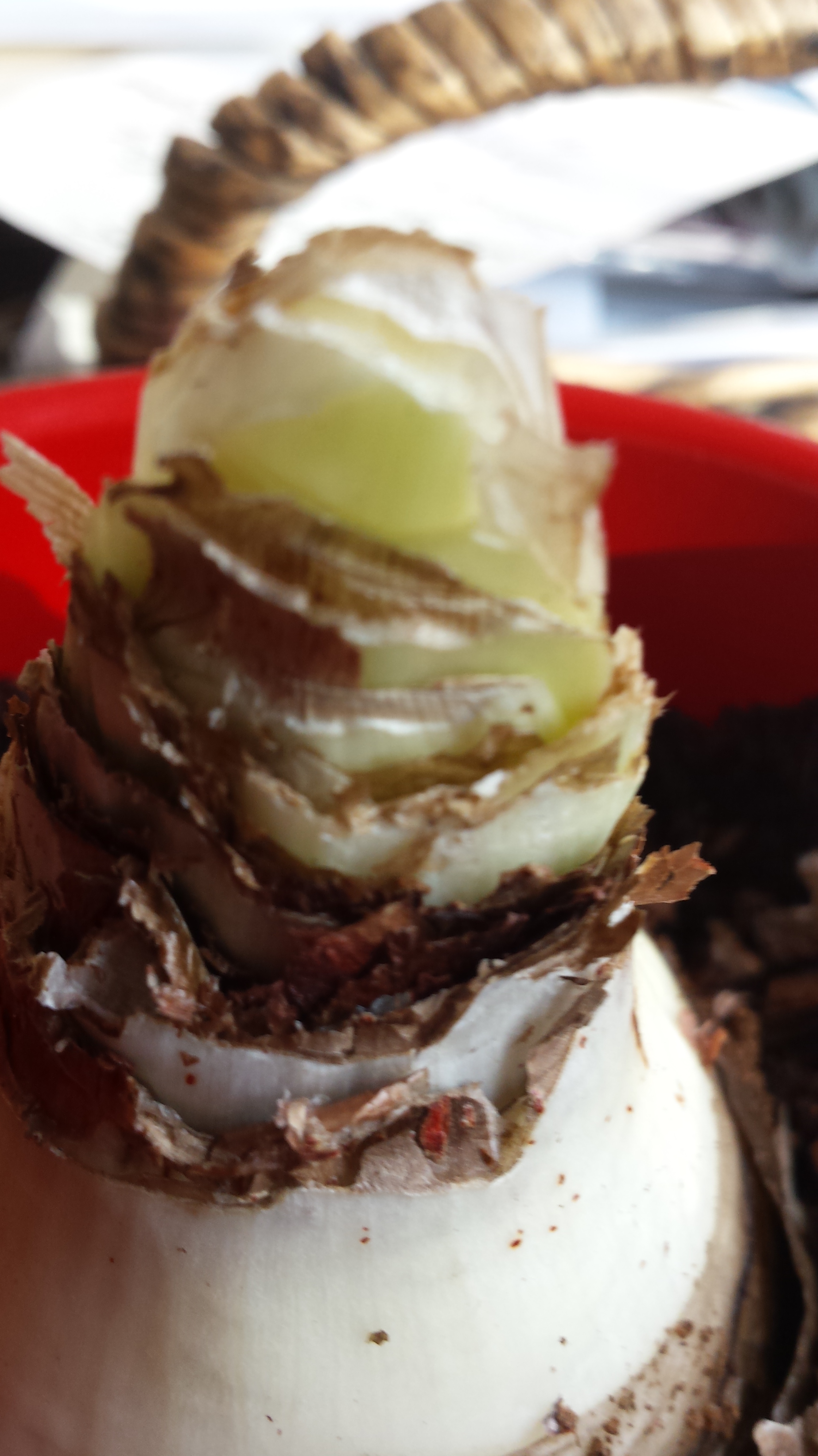 I cut off the old leaves once the new growth is up enough to stay out of the way of my clippers.