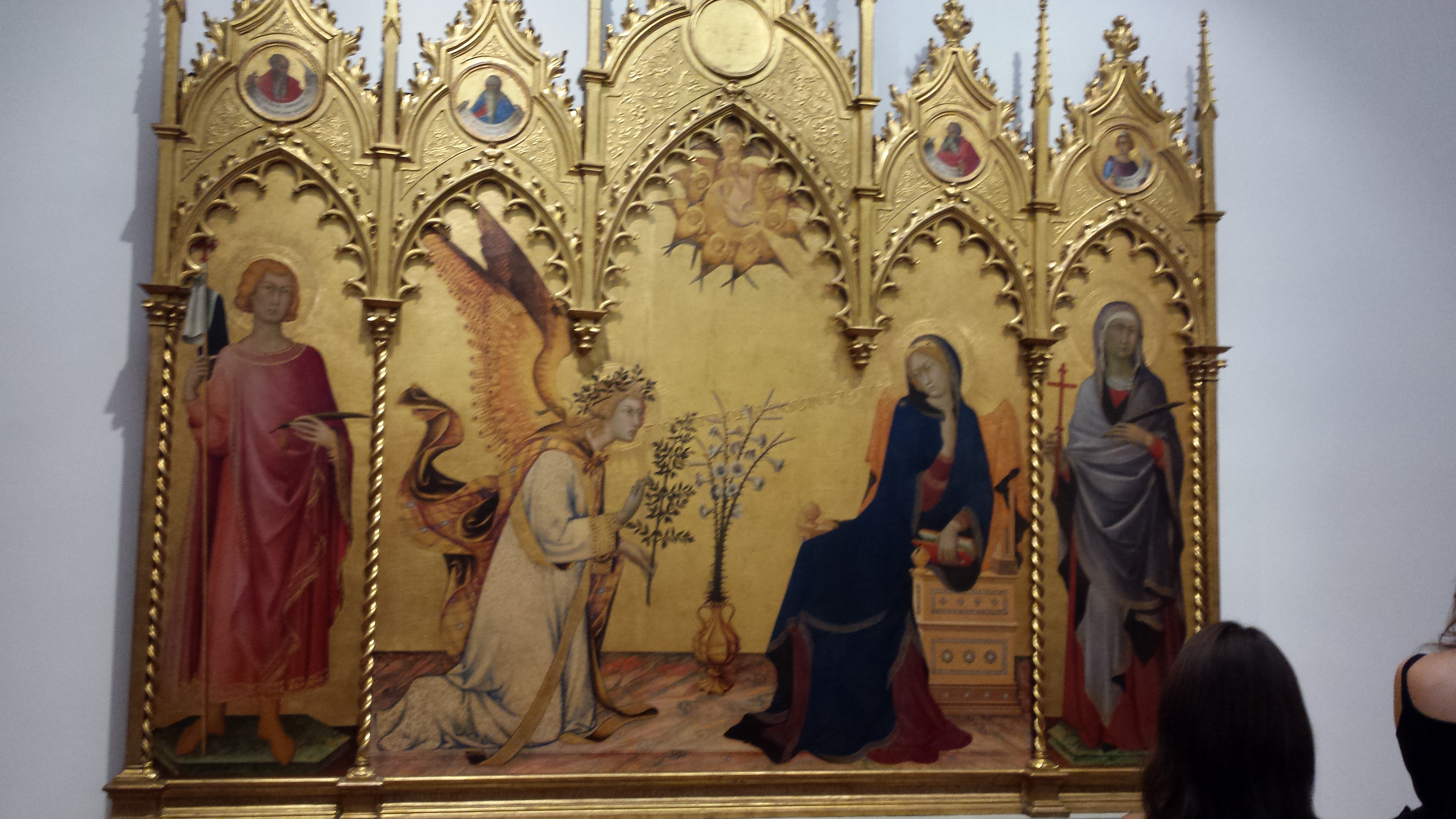 If you search Annunciation paintings of the Uffizi Art Museum (or …of Italy), you will see many examples with much better photography. I was amazed by an angel bringing Mary flowers.