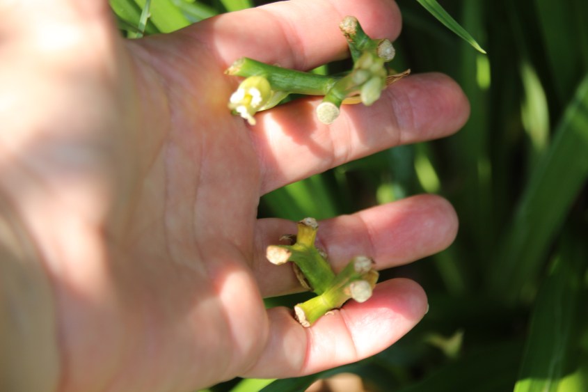 Luckily, I do have one left intact inside the fence to show its juicy, big buds and blooms.