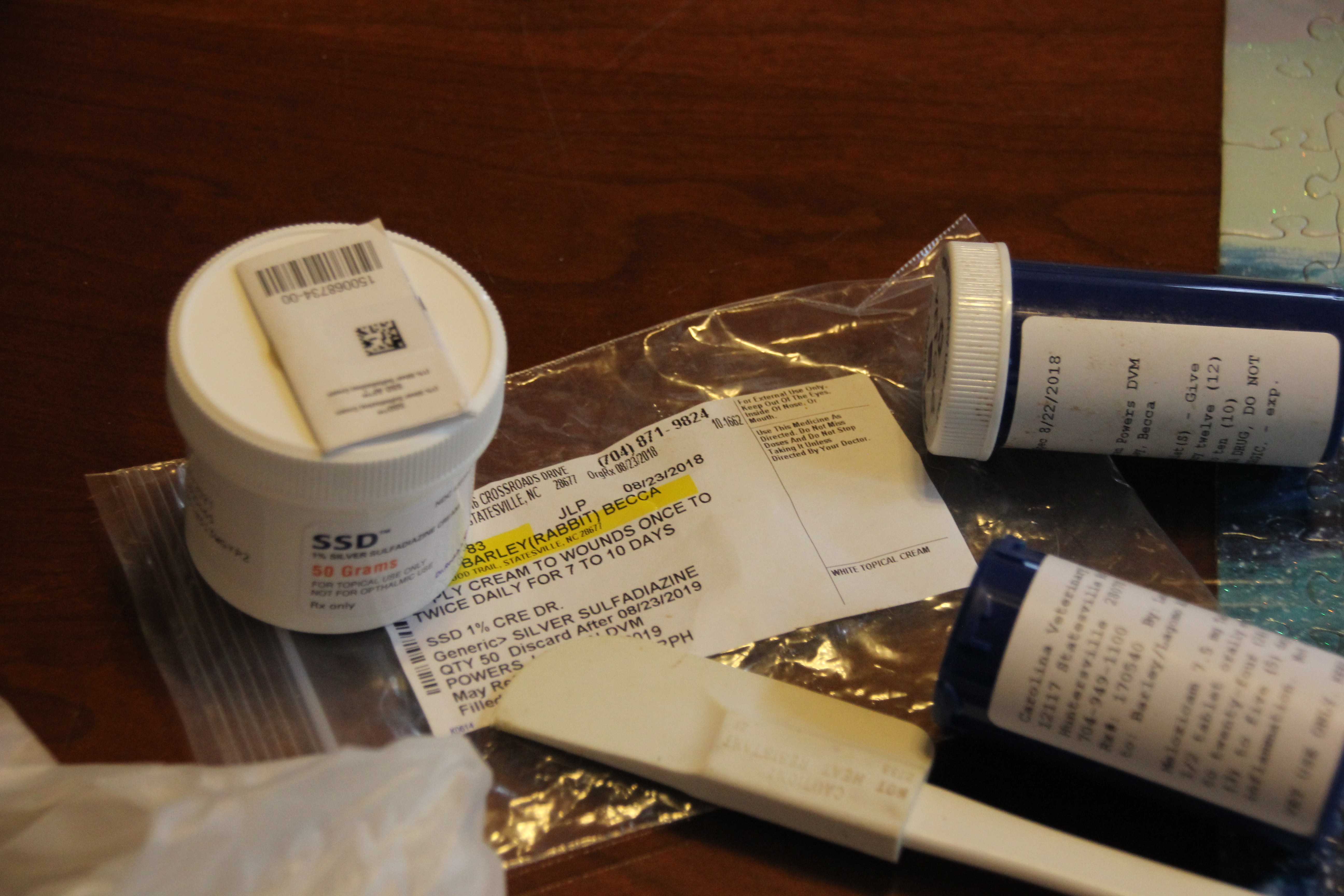 We came home with an antibiotic, an anti-inflammatory and sulfa cream to slather on his bare rear.
