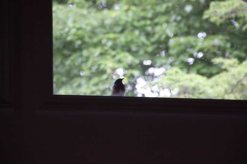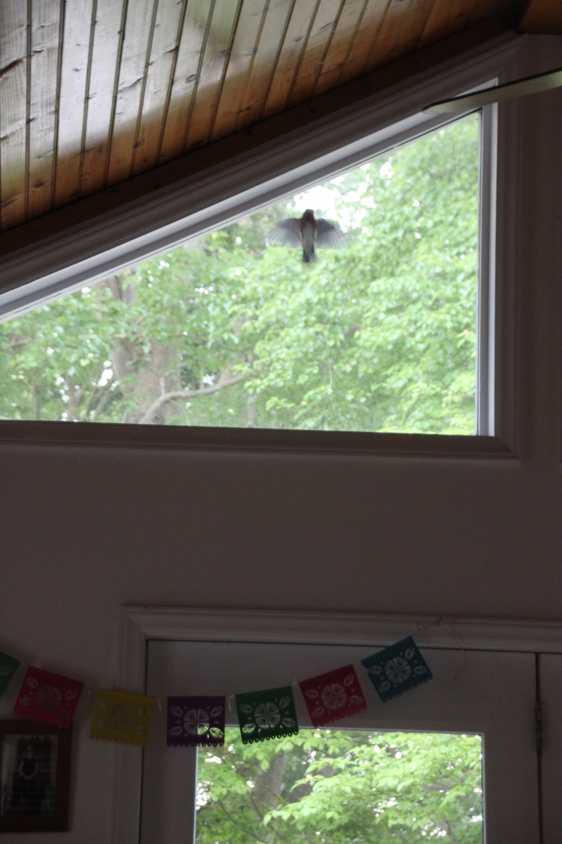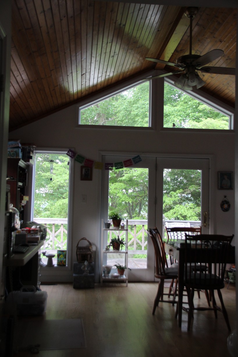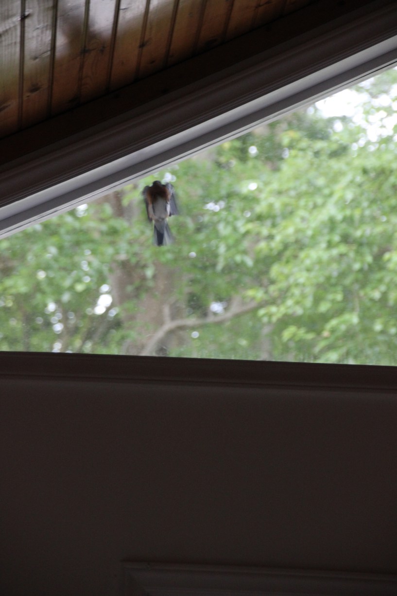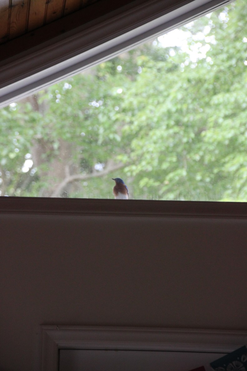 The stamen with pollen and stigma are under the roof.
