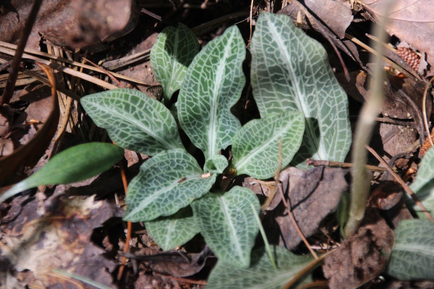 This Rattlesnake Plantain(Orchid)/ Goodyera pubescens is loved for its leaves.