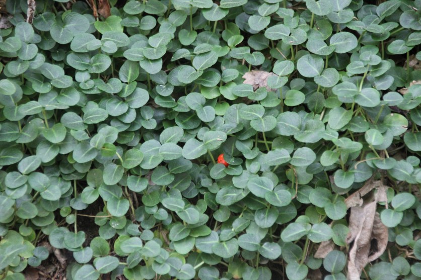 I love its creeping growth and brilliant red berries.