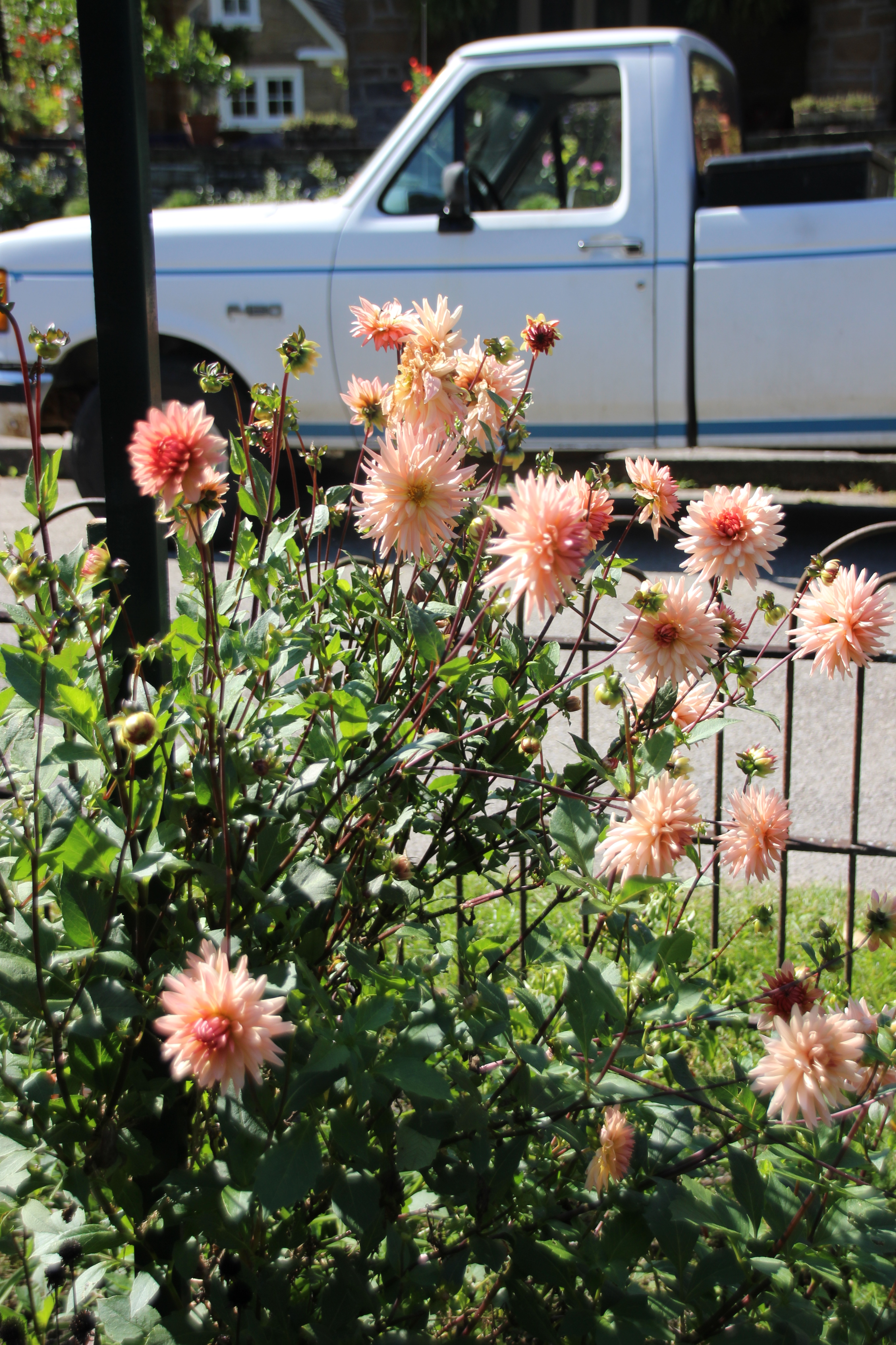 There was a row of dahlias shamelessly showing off right there next to the sidewalk.