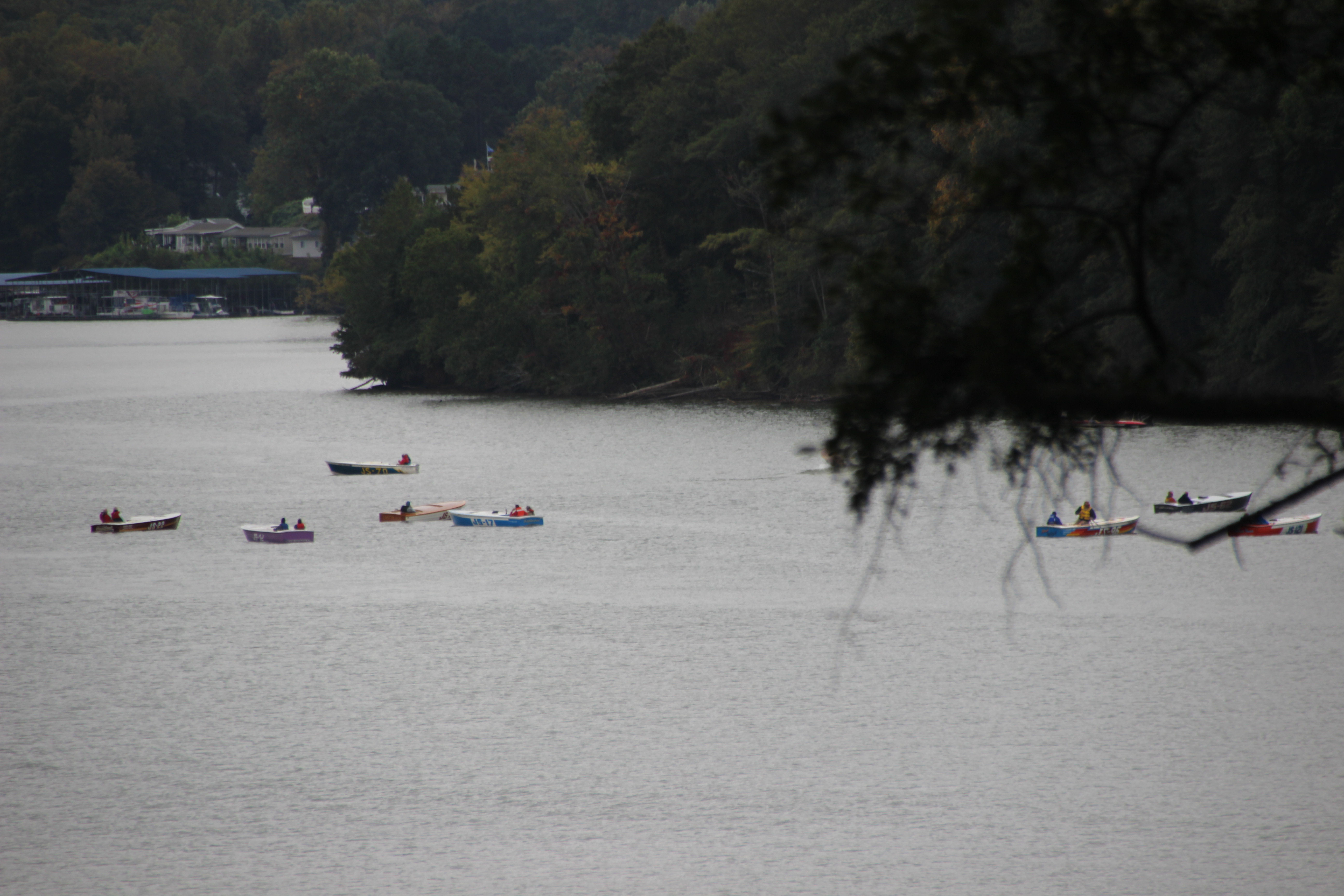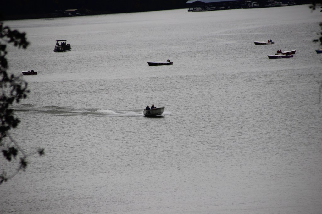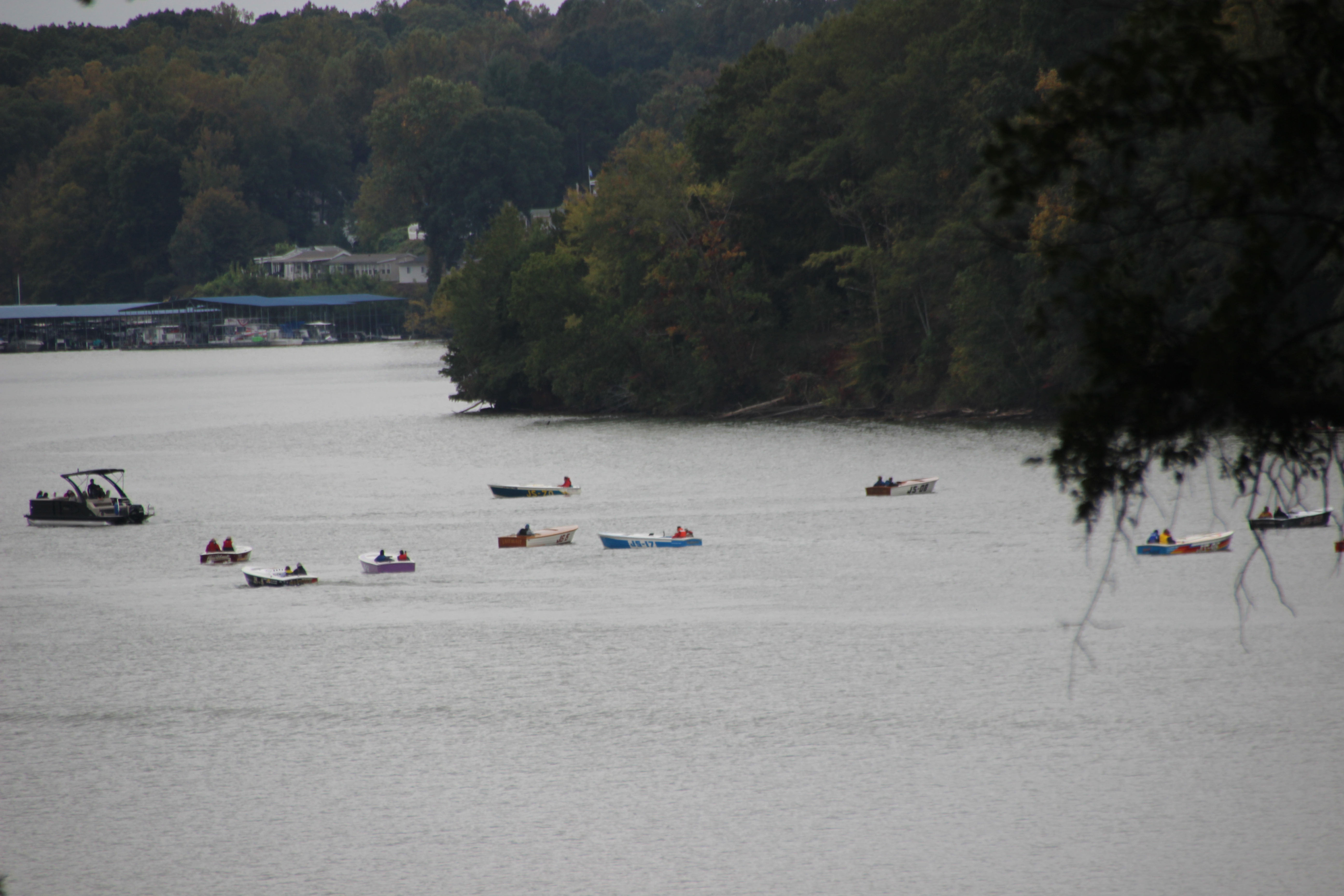 A group of boats gathered. All boats had the letters JS and a number on the side.