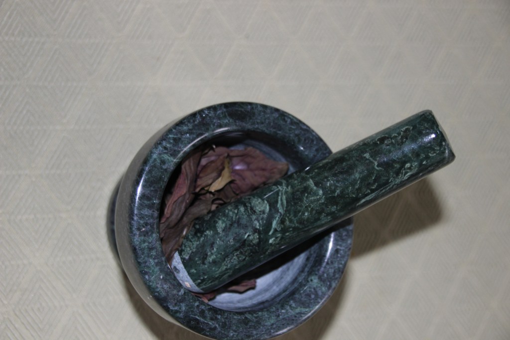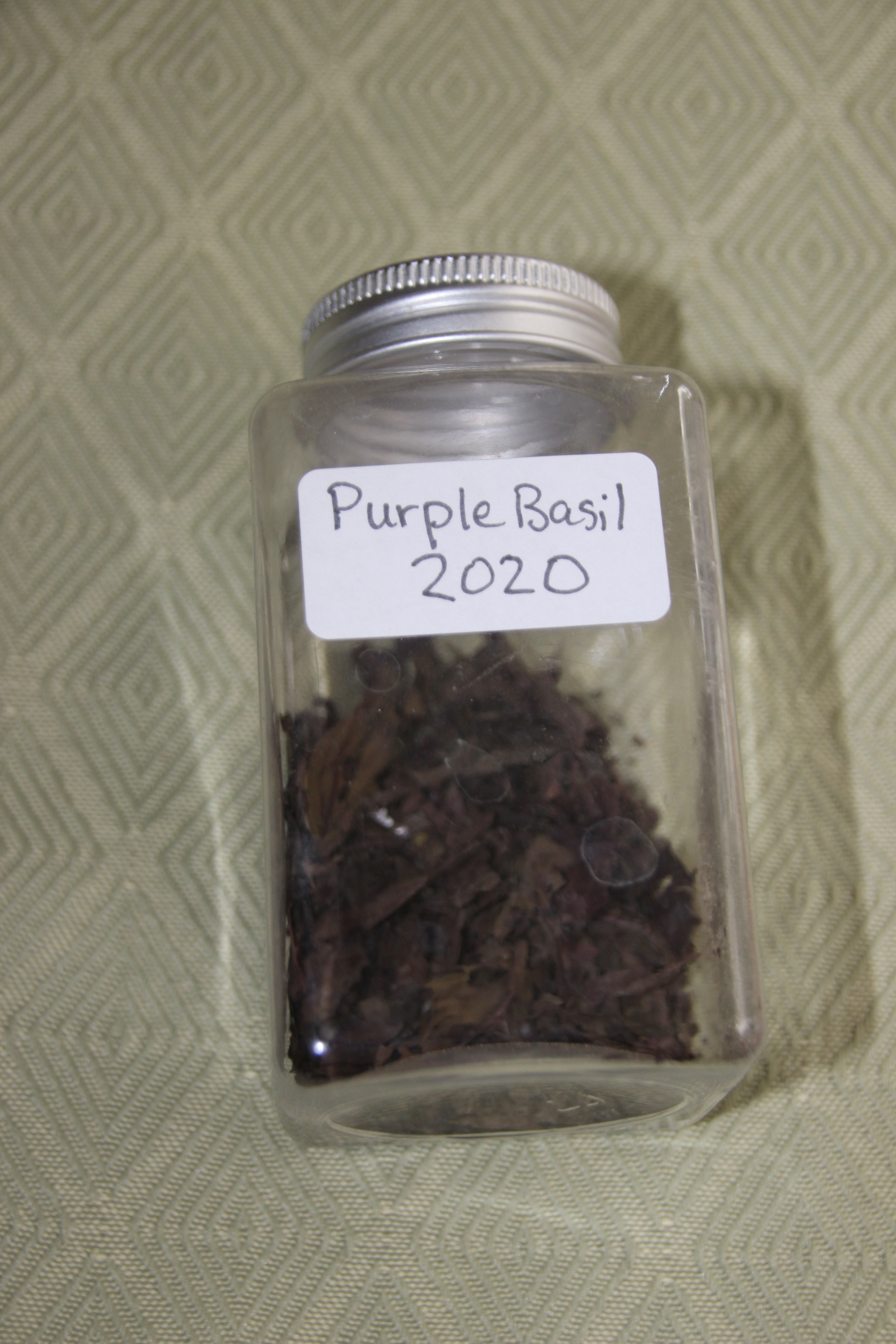 I place the labeled herb bottle on the stove top to remind me the basil is in there.