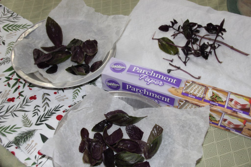 AFTER the oven is off, I put the pans of basil in it to dry.