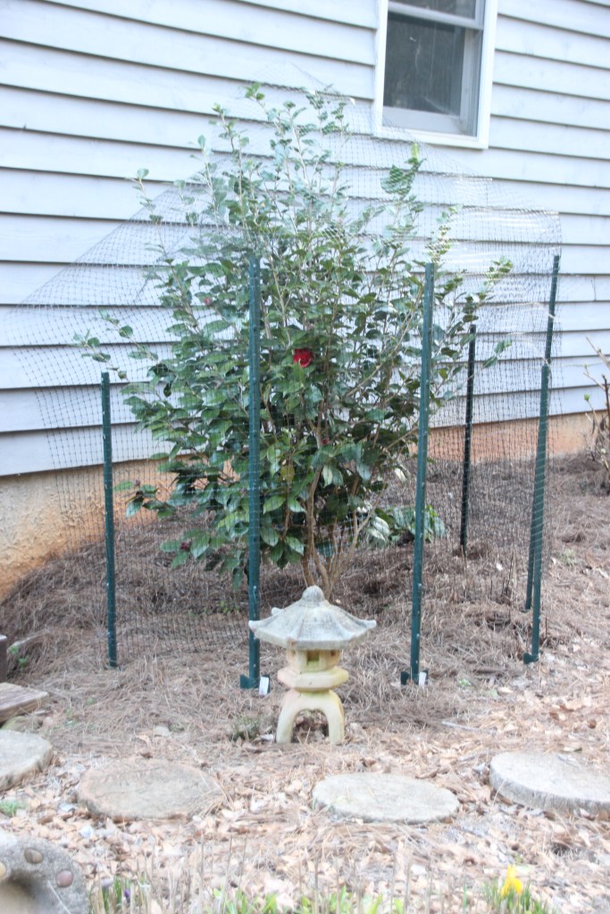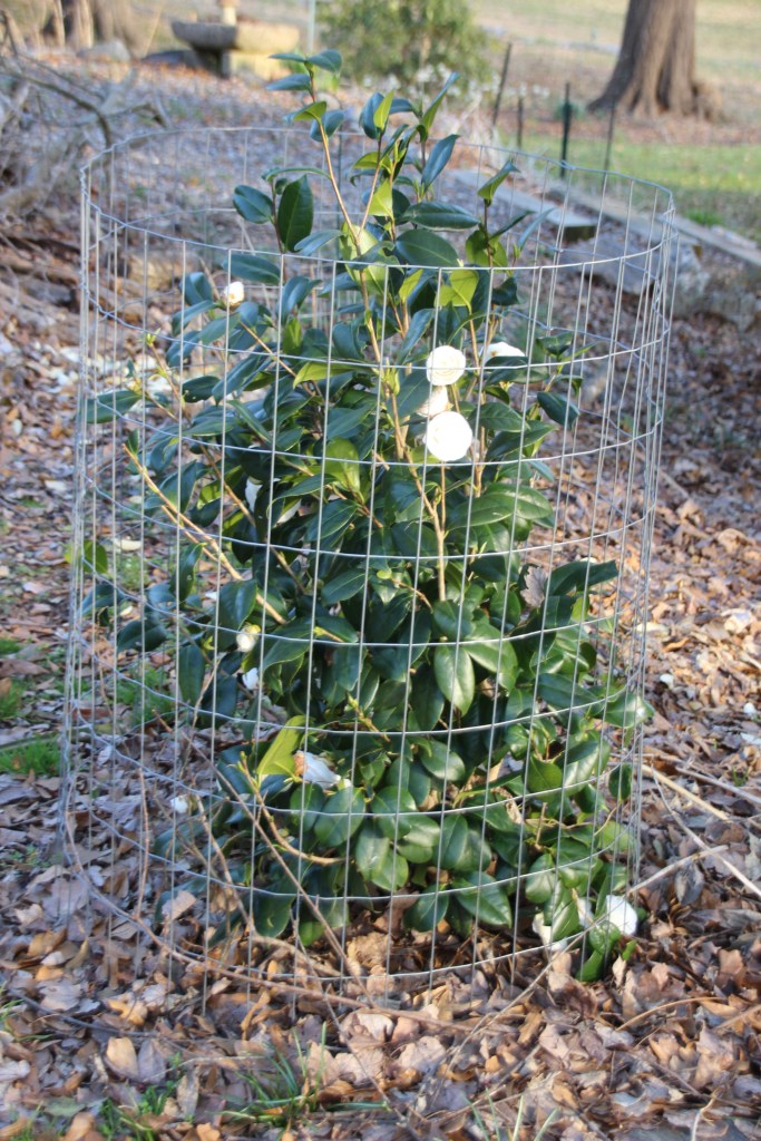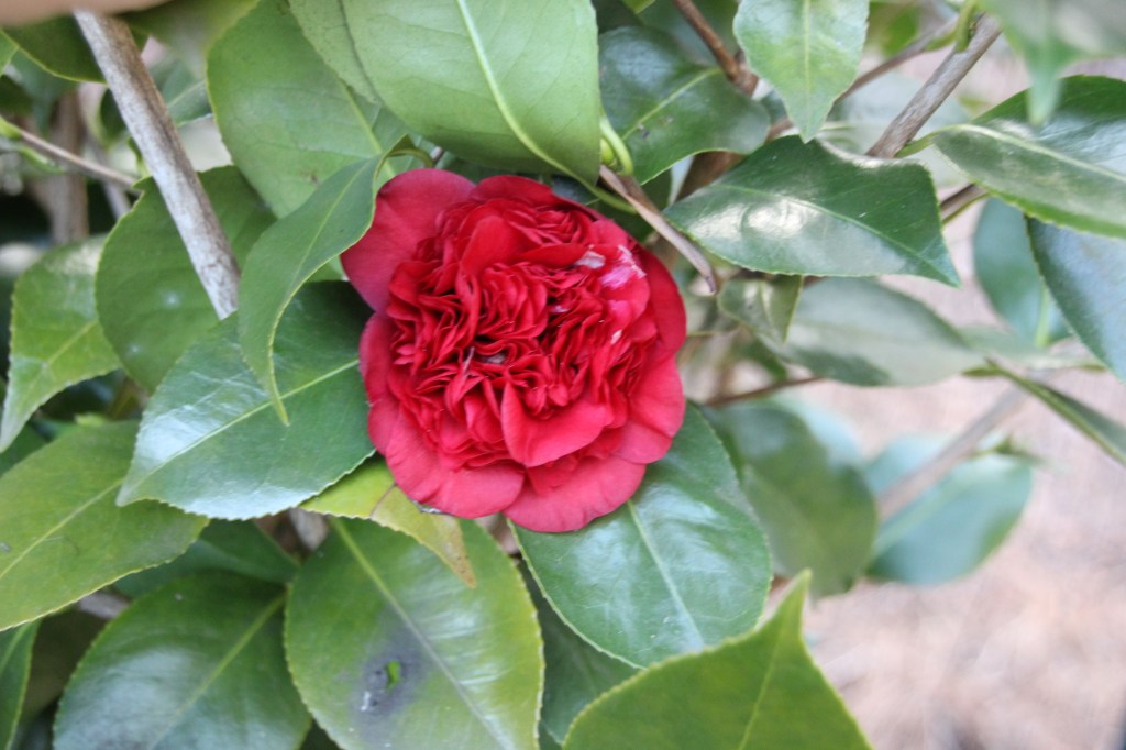 This week I noticed the front of my ‘Professor Sargent’ Camellia japonica was missing.