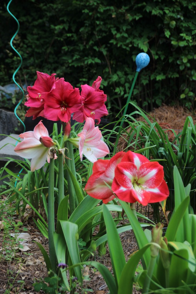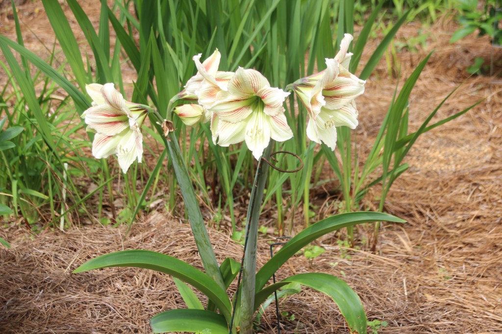 Last year I hung a tacky mixture of things for Climbing Okra to cling to.