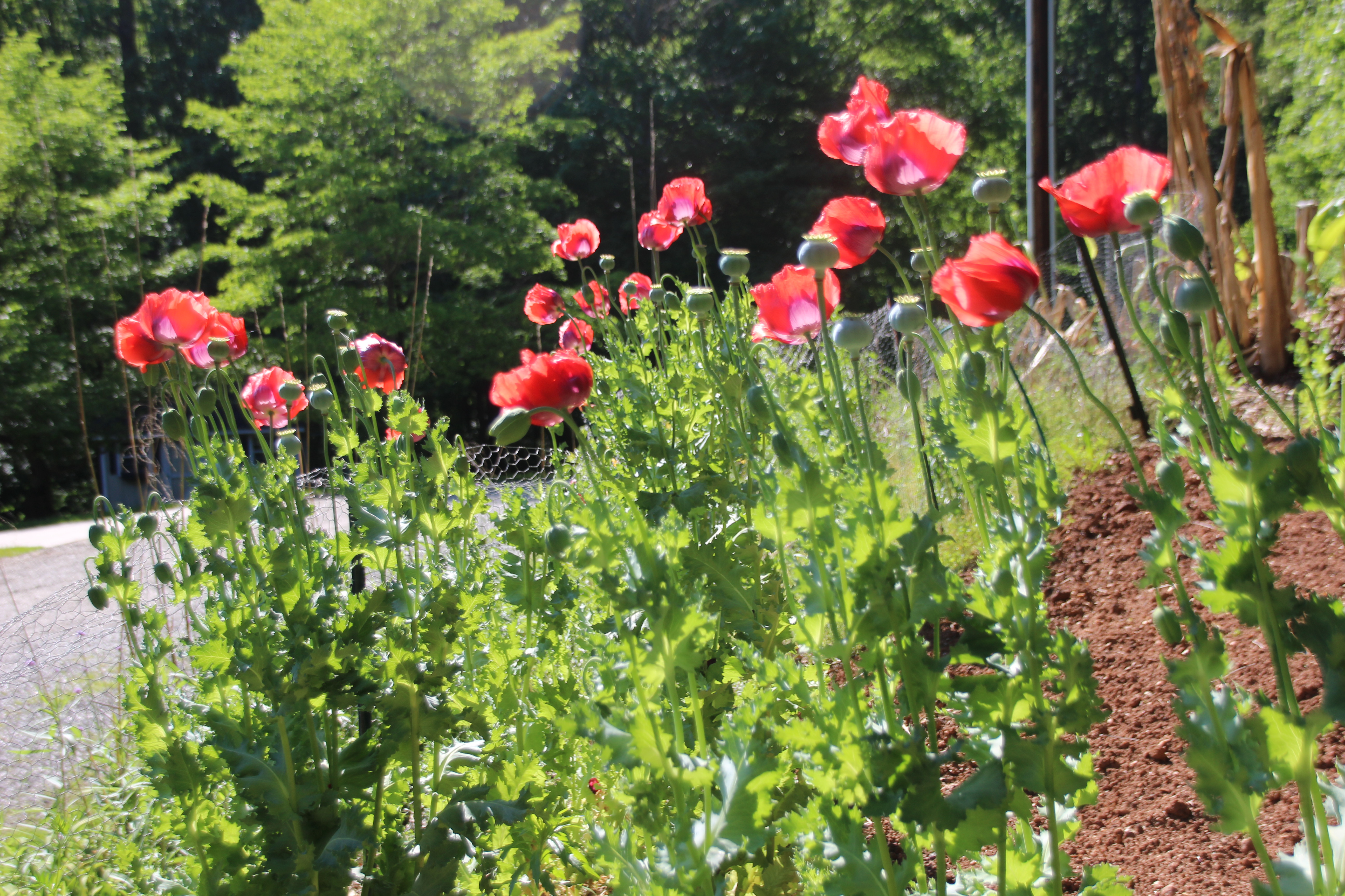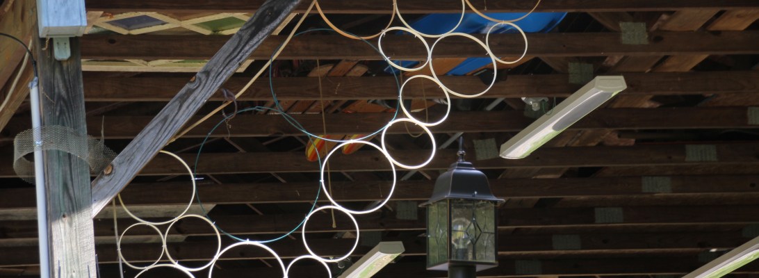 Last year I hung a tacky mixture of things for Climbing Okra to cling to.