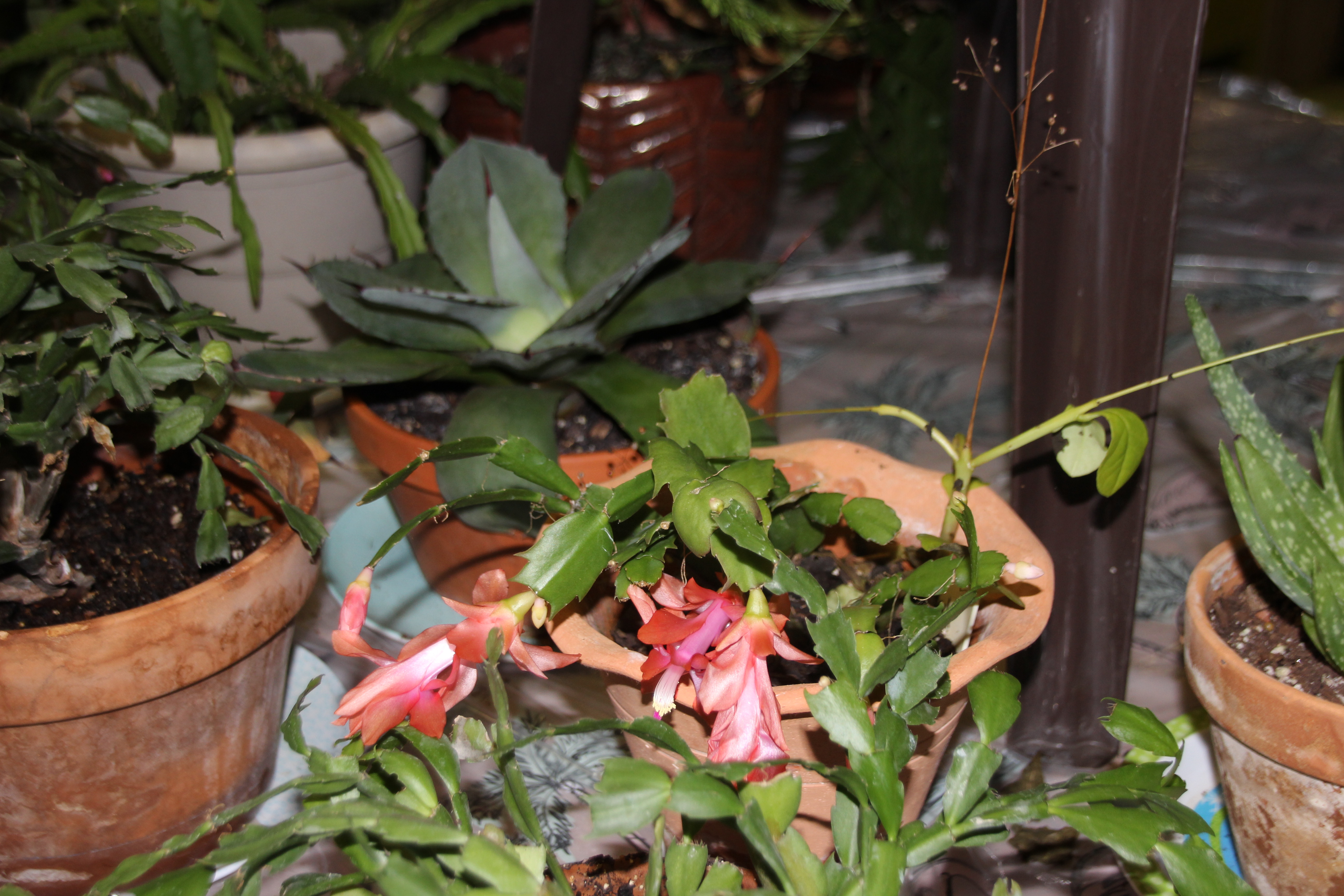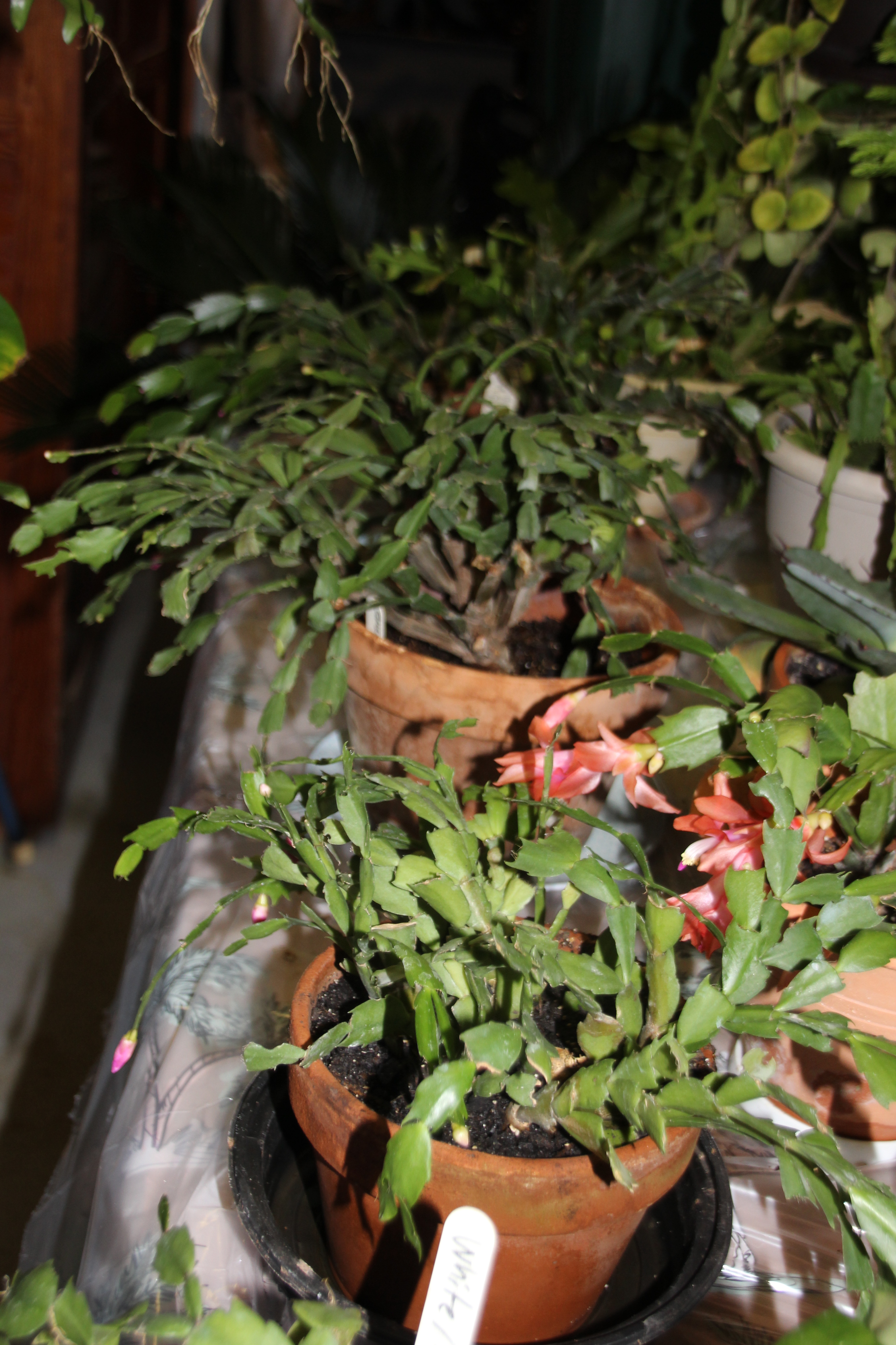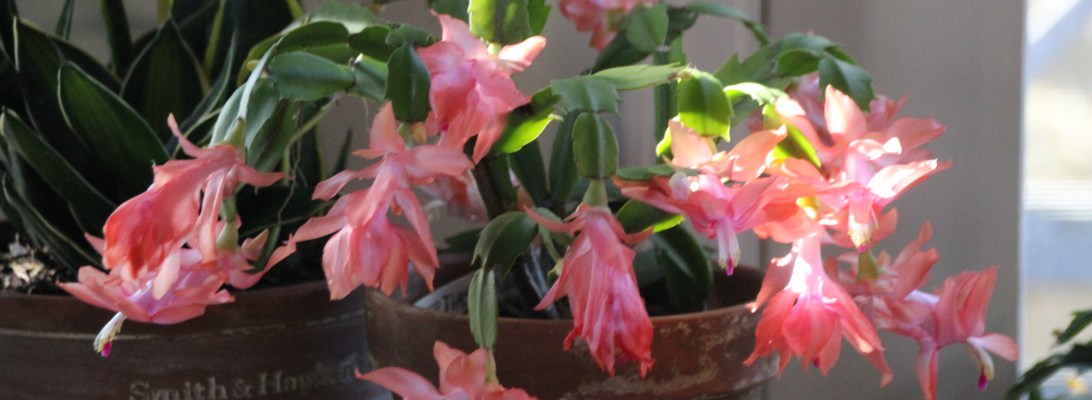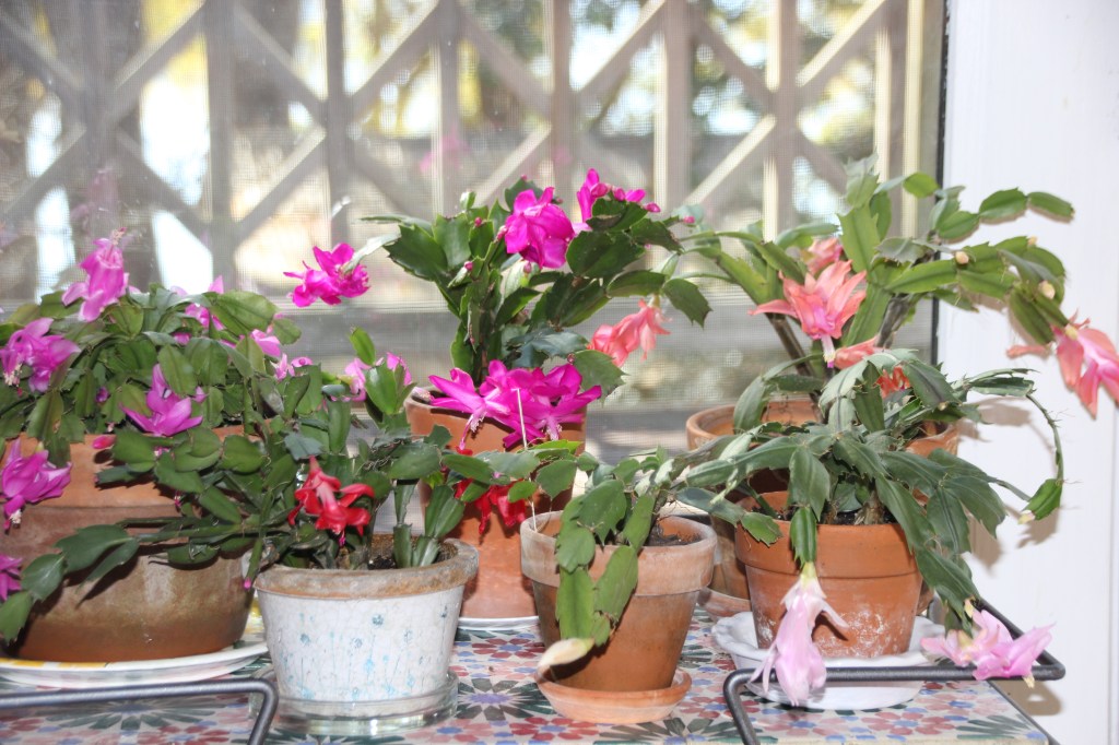 Once the Schlumbergeras stop blooming, I know there will be no more flowers for a while. This is the tough part of the year for me. Everything outside is bitten back by freezes and brown. My tasks now involve clipping off dead tops and blowing leaves.