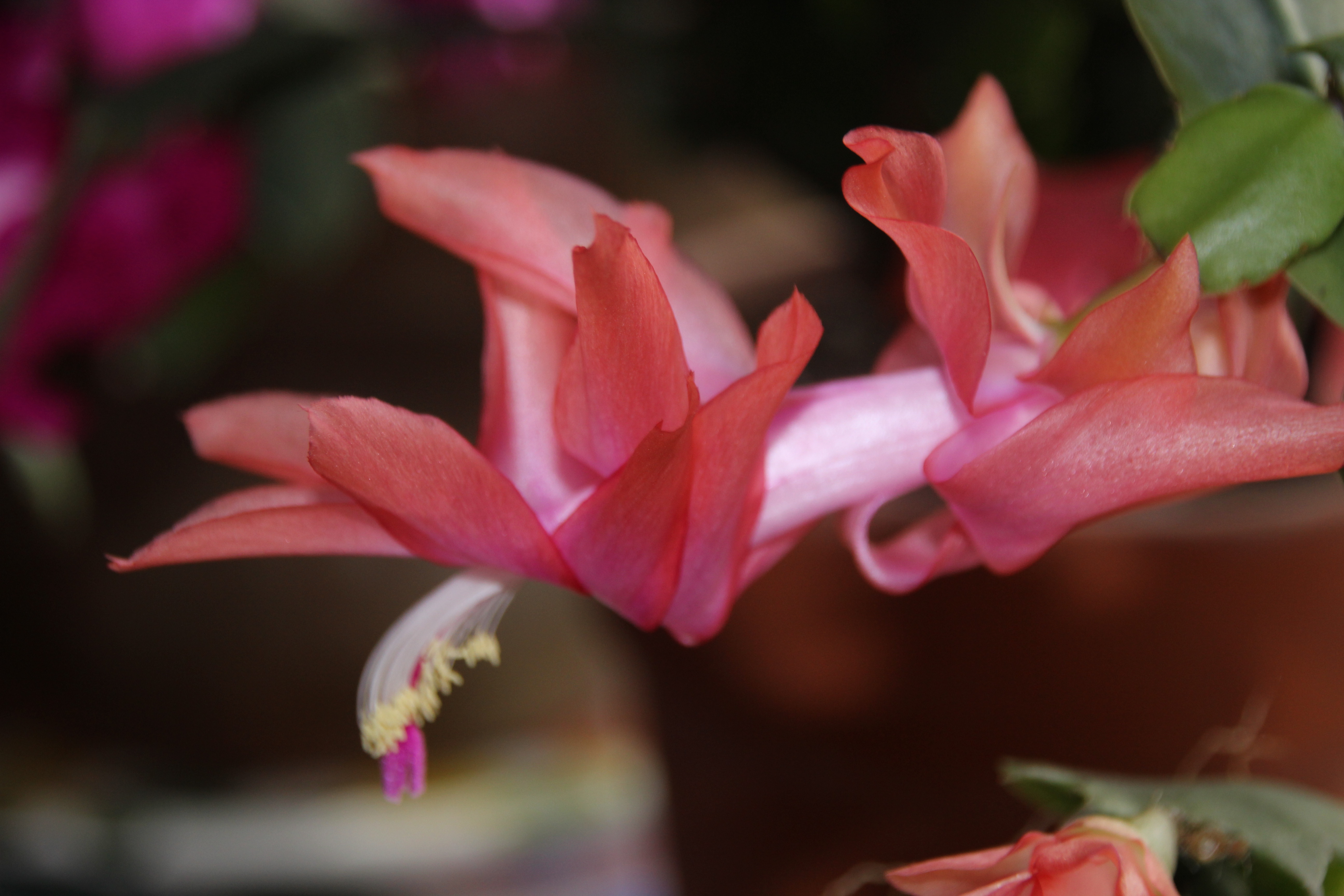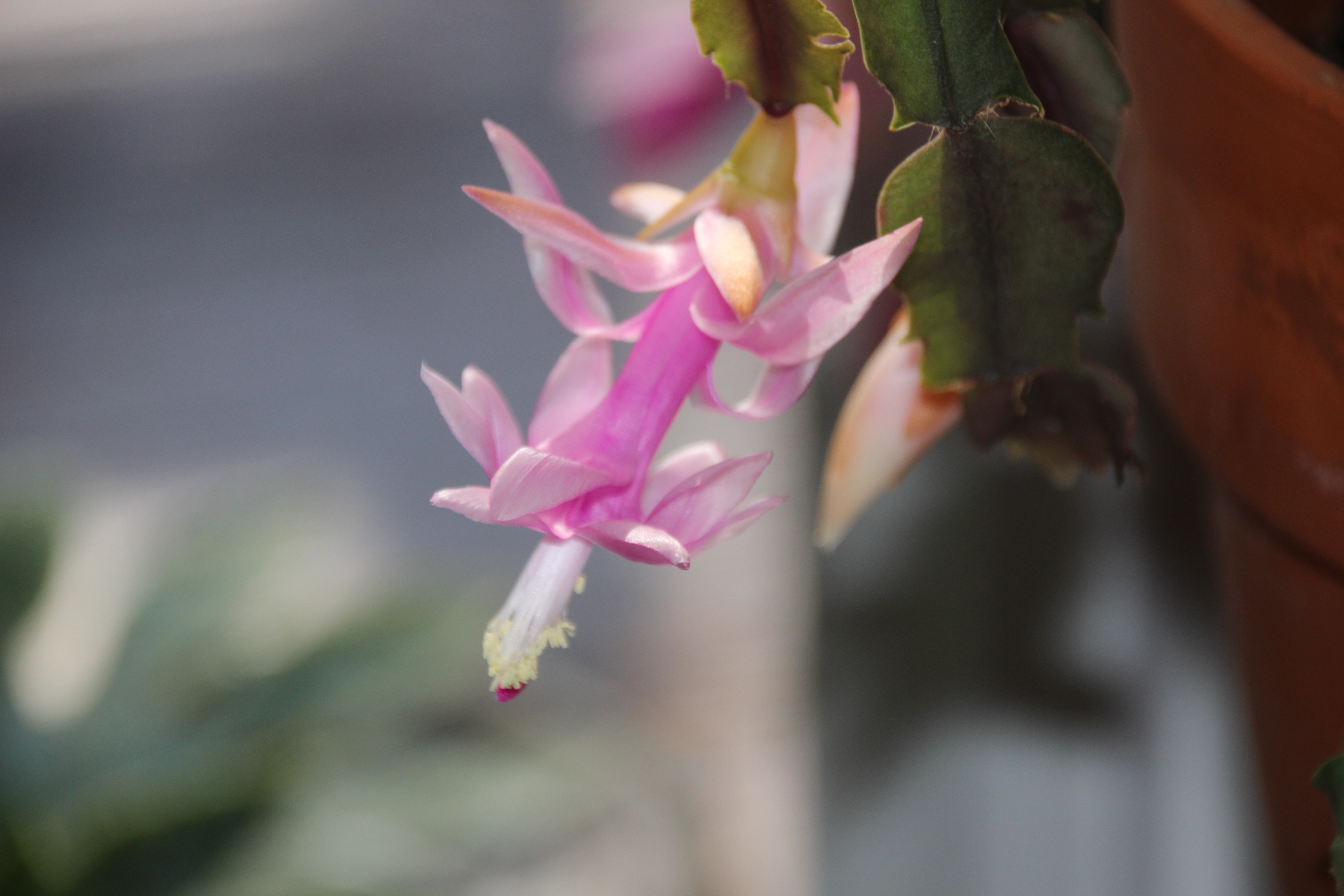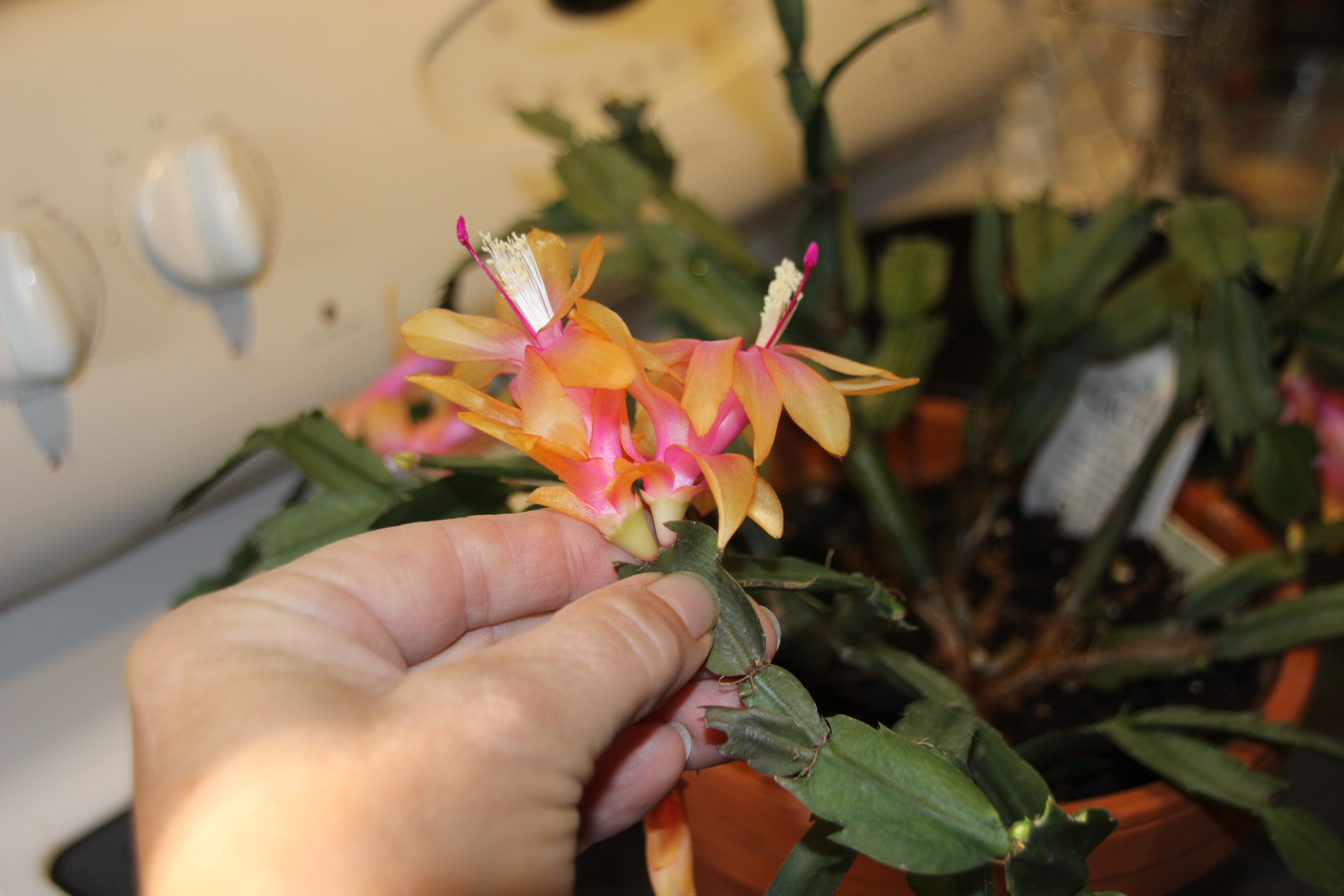 Once the Schlumbergeras stop blooming, I know there will be no more flowers for a while. This is the tough part of the year for me. Everything outside is bitten back by freezes and brown. My tasks now involve clipping off dead tops and blowing leaves.