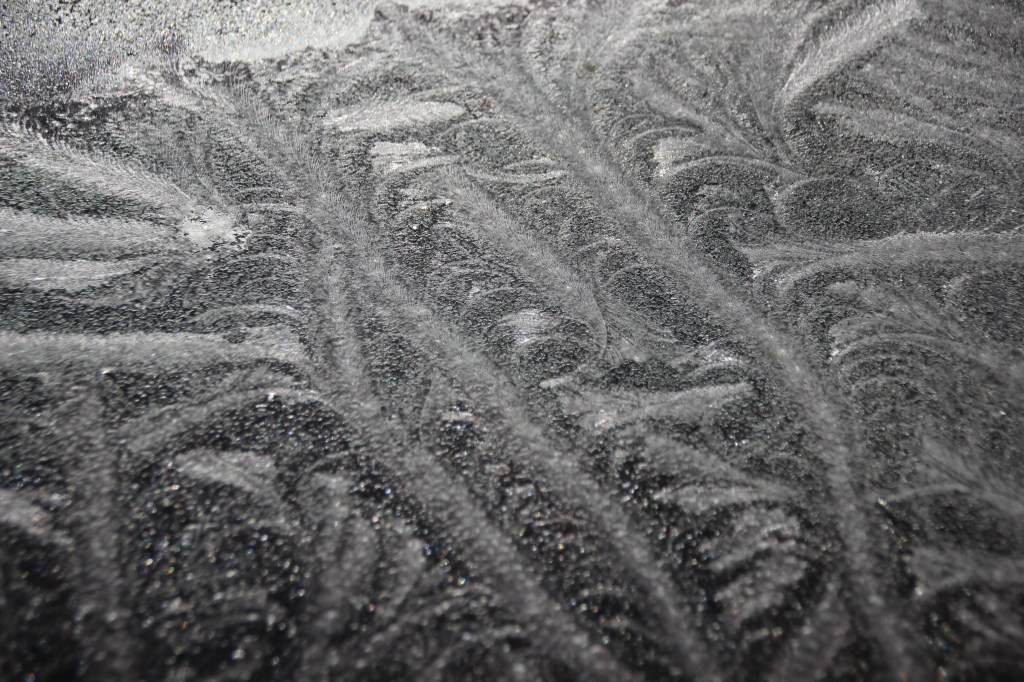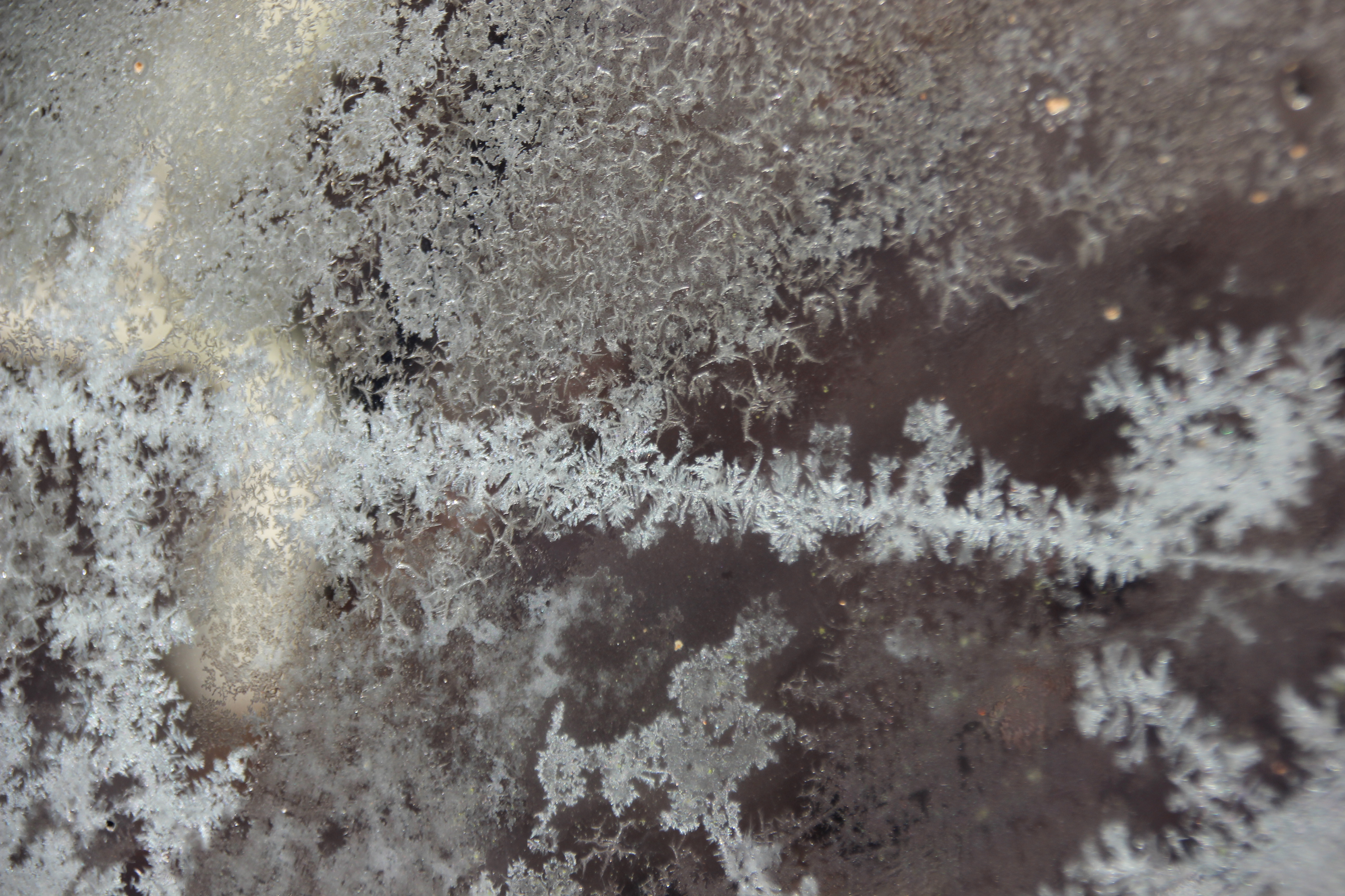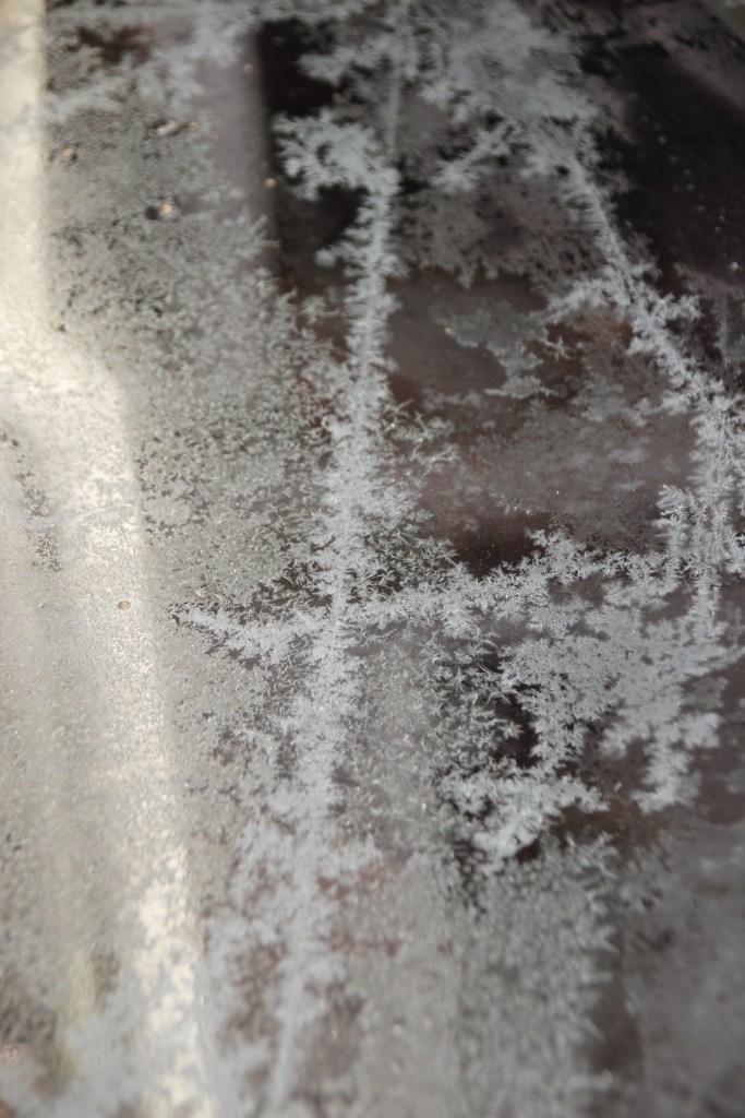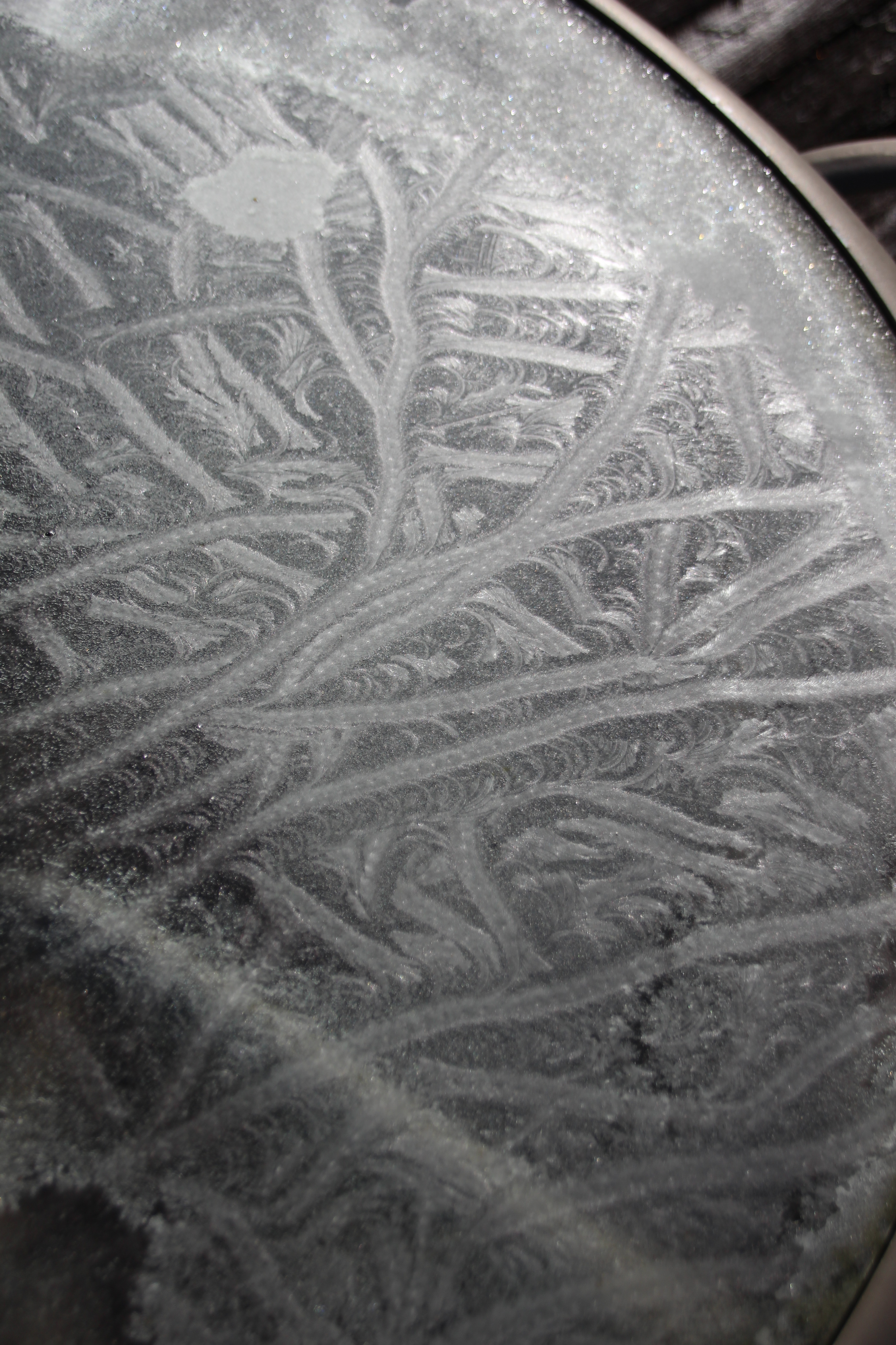 I ventured out into the cold this morning because I saw this straight line of crystals across the top of this glass table. I feared a crack had formed.