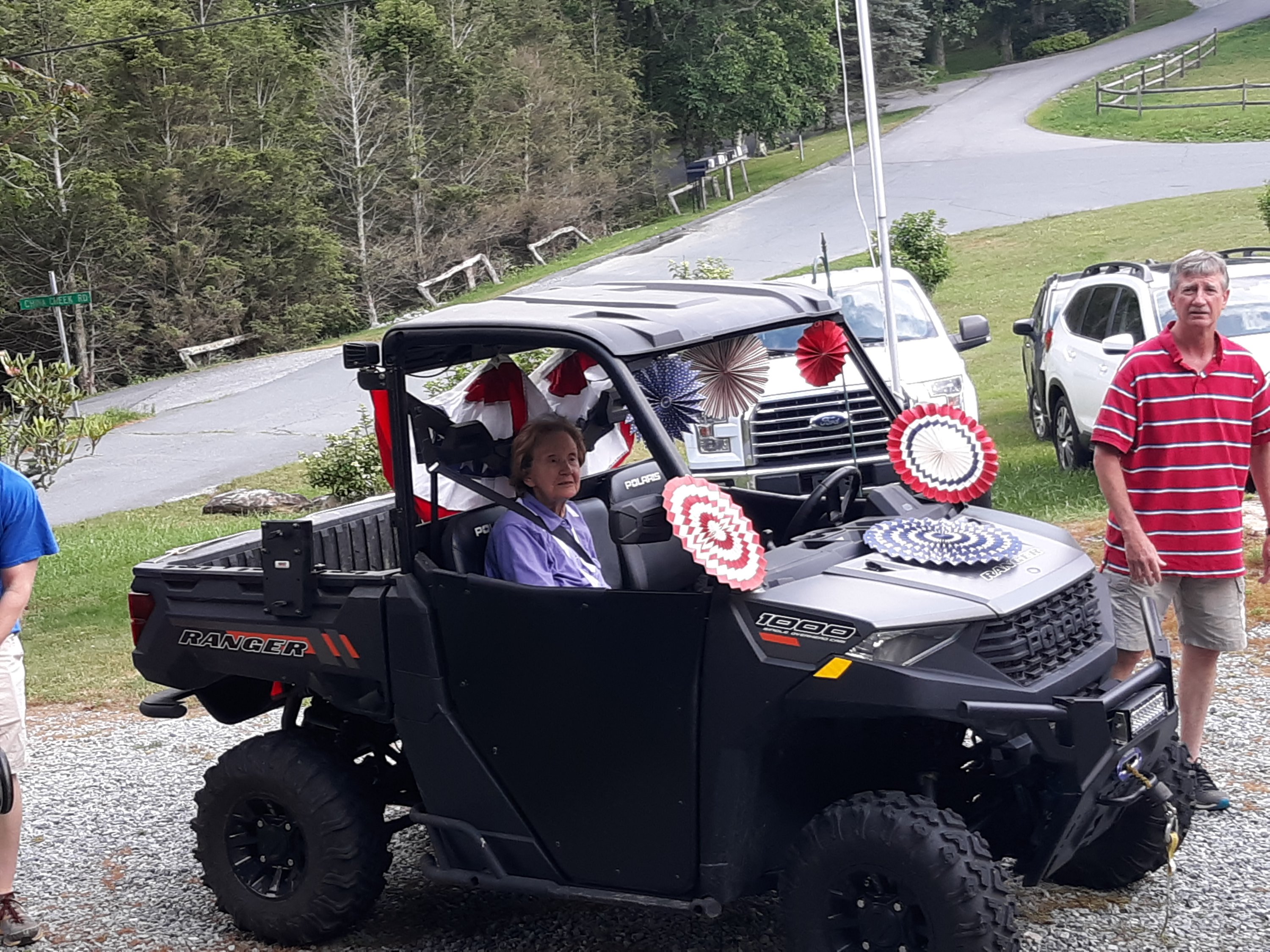 That side-by-side isn’t just for working. It transported Mama to a July 4th party in style.