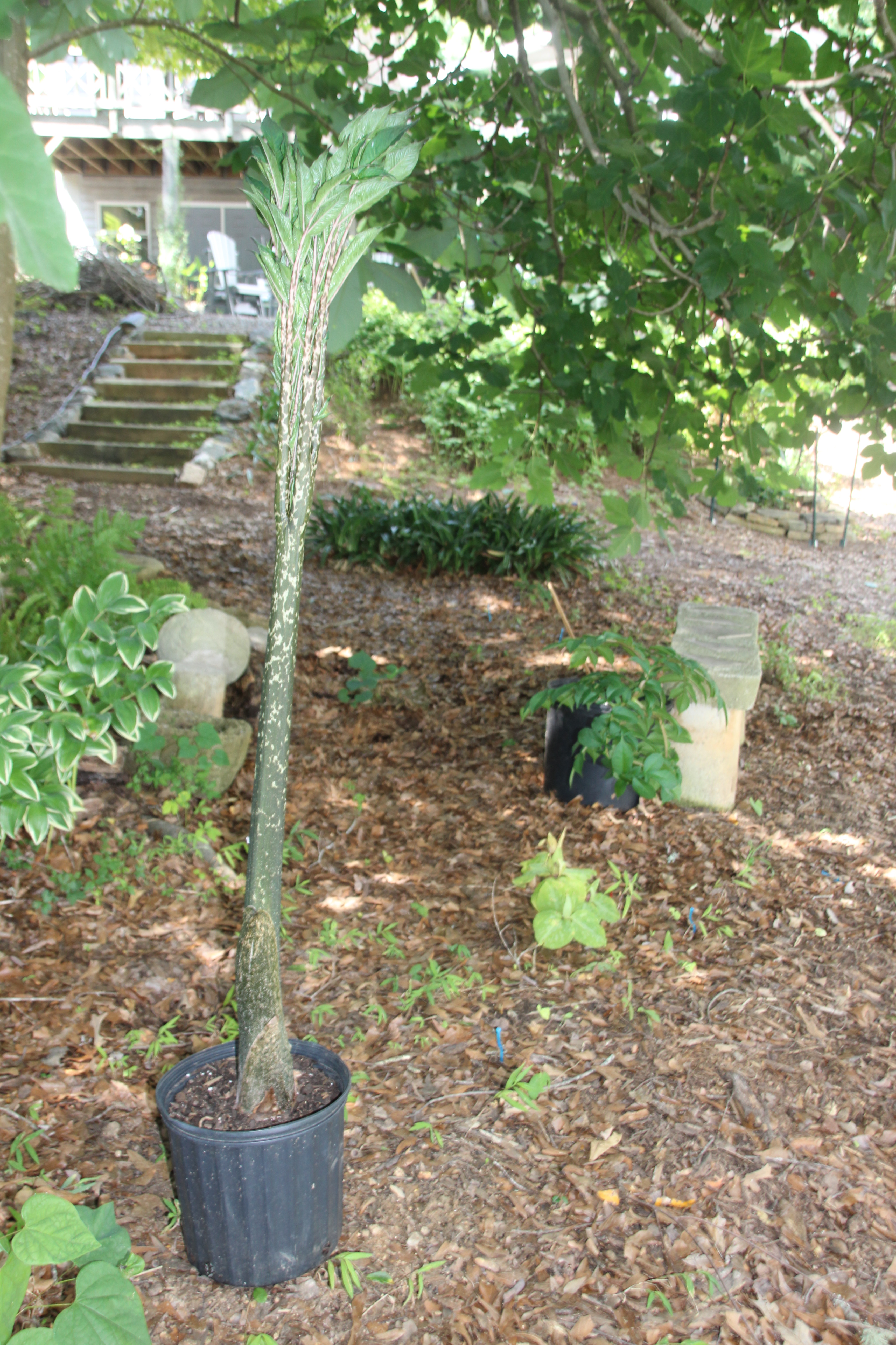 I hate to admit that it has taken me this long to select a suitable site and plant the three Devil’s Tongue plants that were gifted to me by my friends, the Popes.