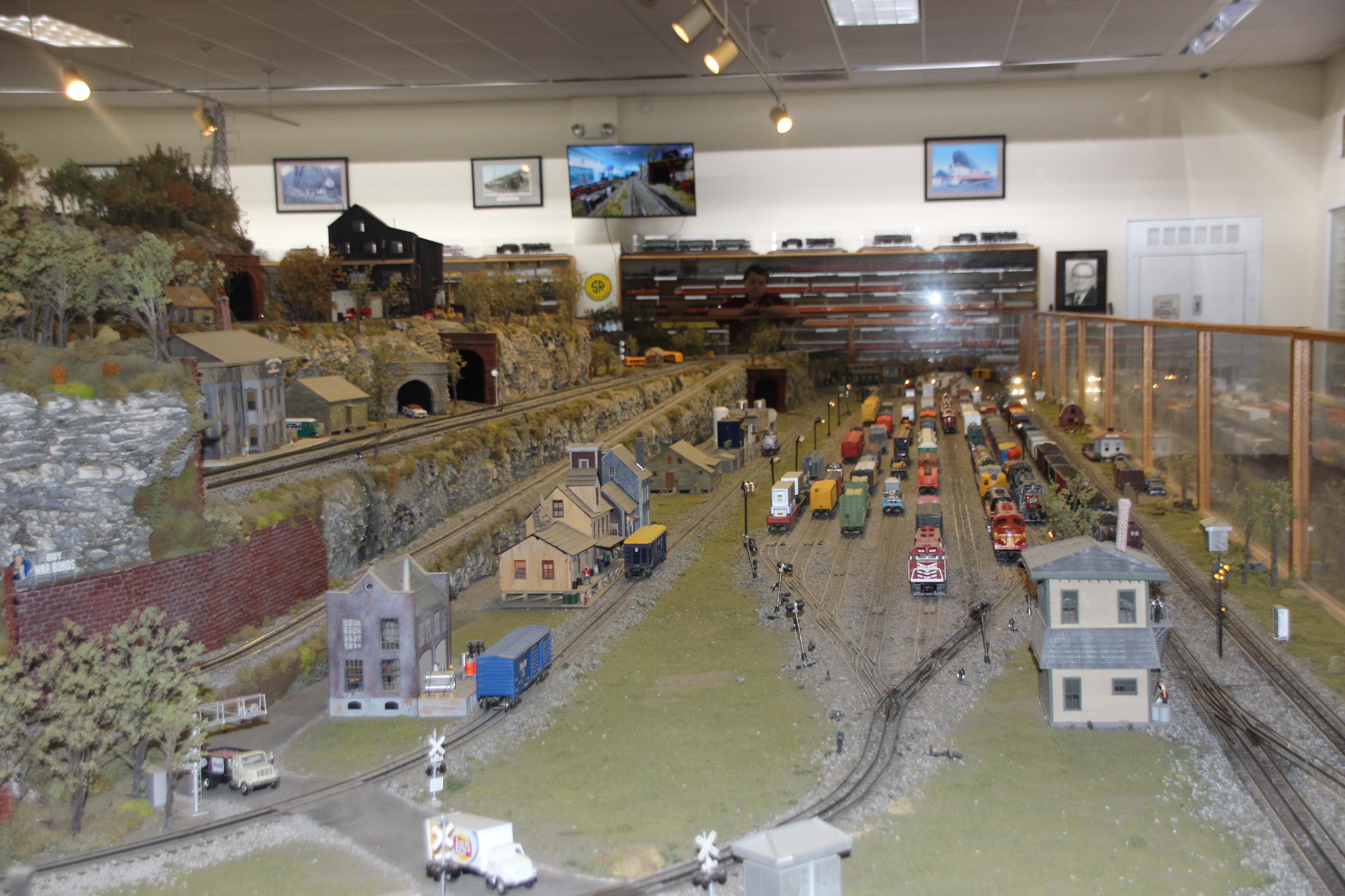 The walls were lined with every type and size of model train imaginable. The middle of the huge building had train towns set up and running. Whistles were blowing, lights were flashing and tiny people were in action.