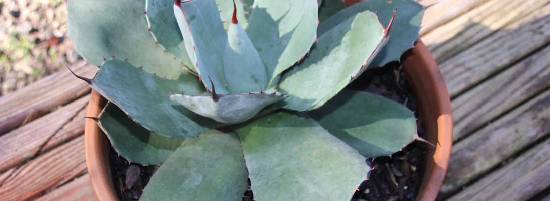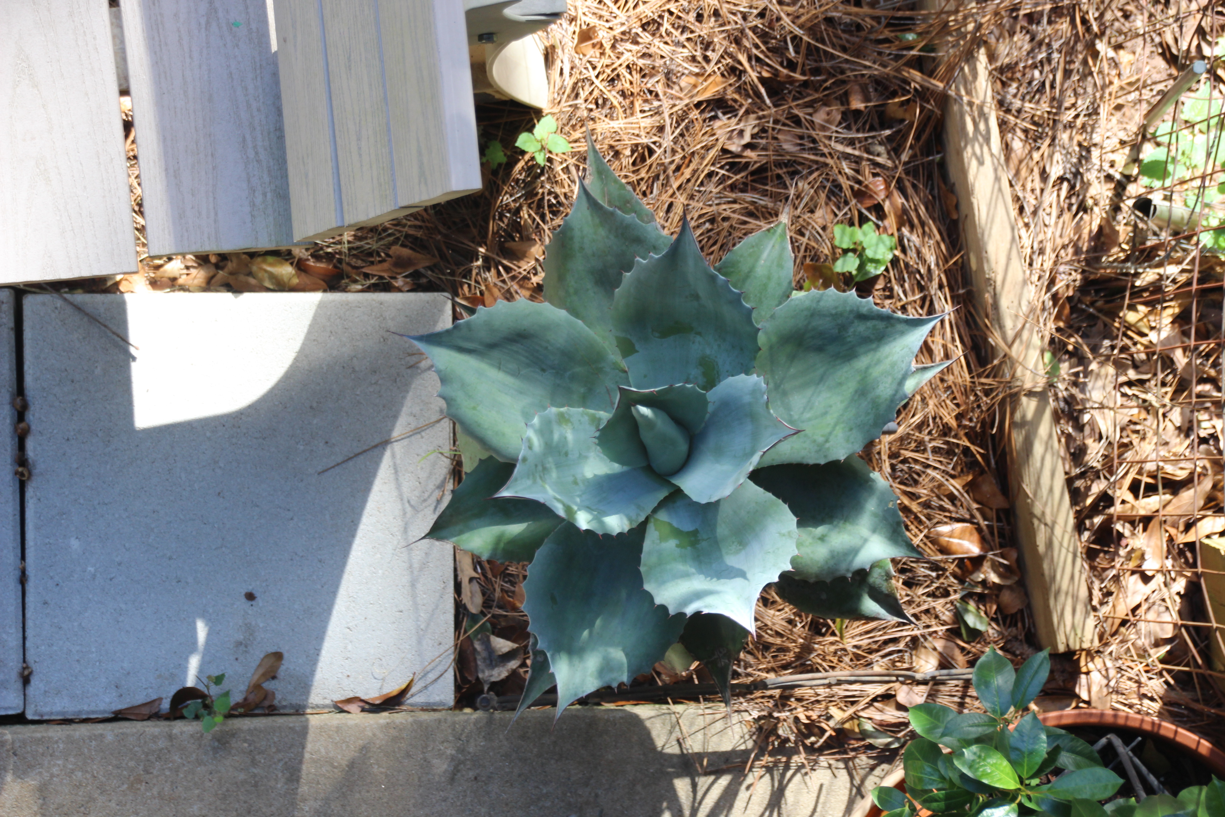 One of my Agave was labeled ‘Whale’s Tongue.’ Both are years away from blooming. I am afraid to leave them out during the winter here in Zone 7.