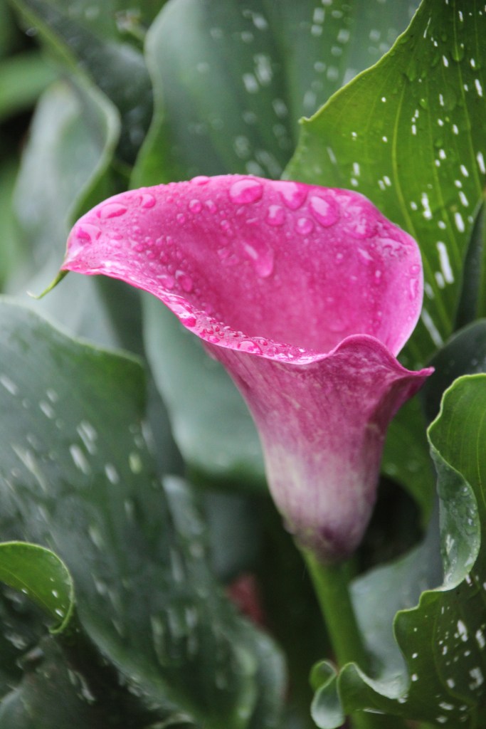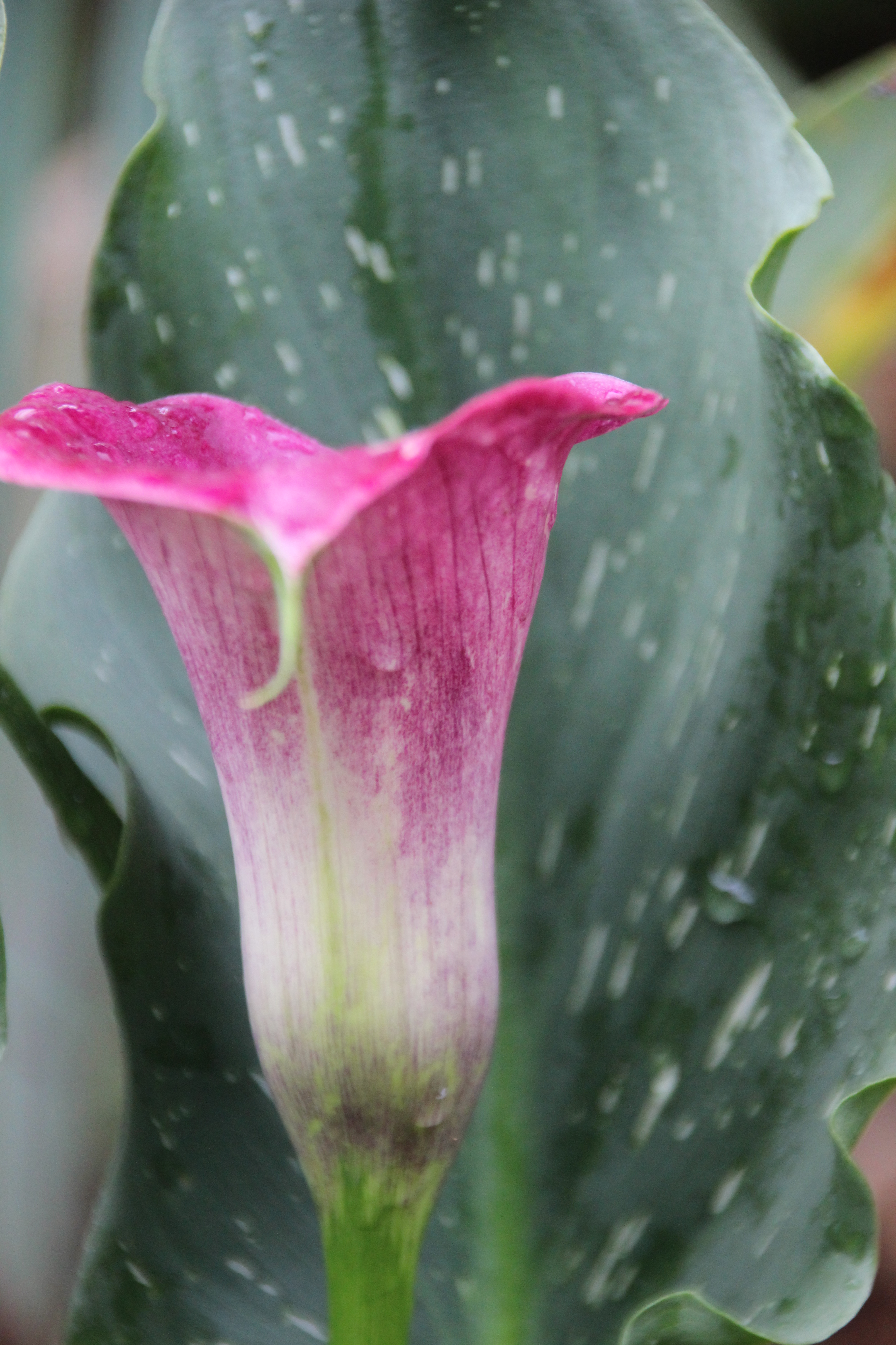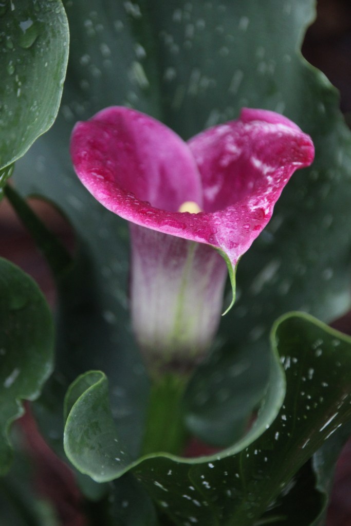 This plant was looking thirsty and limp. Now it has plumped up. Callas need a lot of moisture.