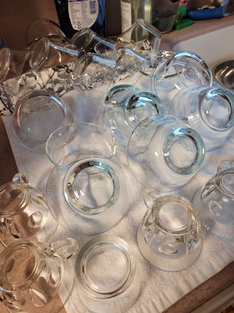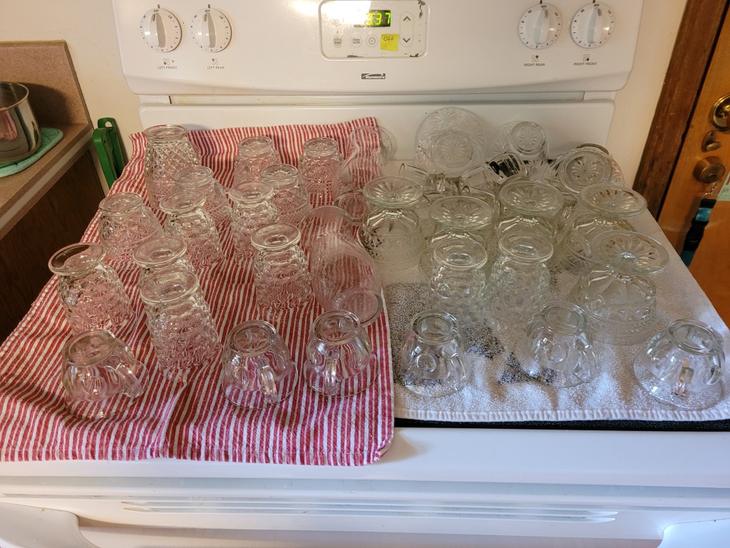 Now it is time to wash the glass. Not fancy, expensive crystal, just lovely little objects of glass.