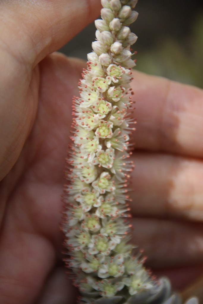 As the raceme of blooms elongate the older flowers fade to yellow.