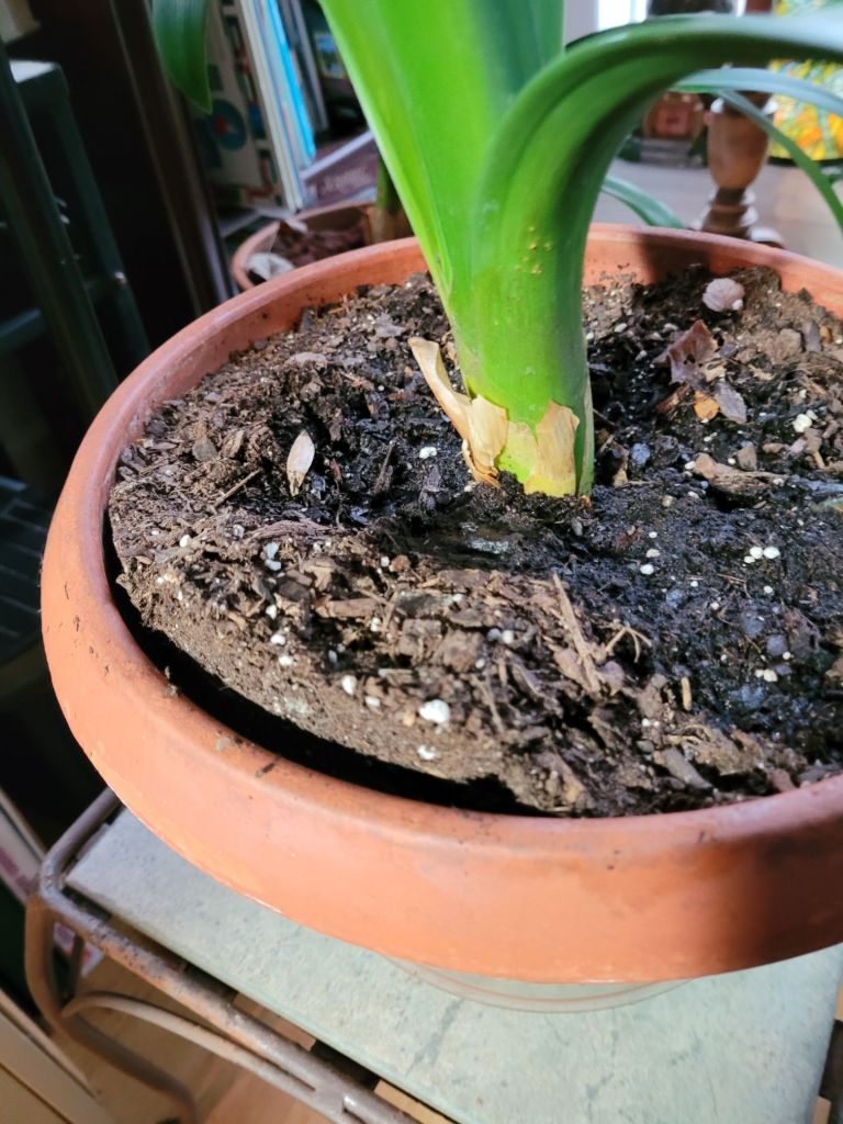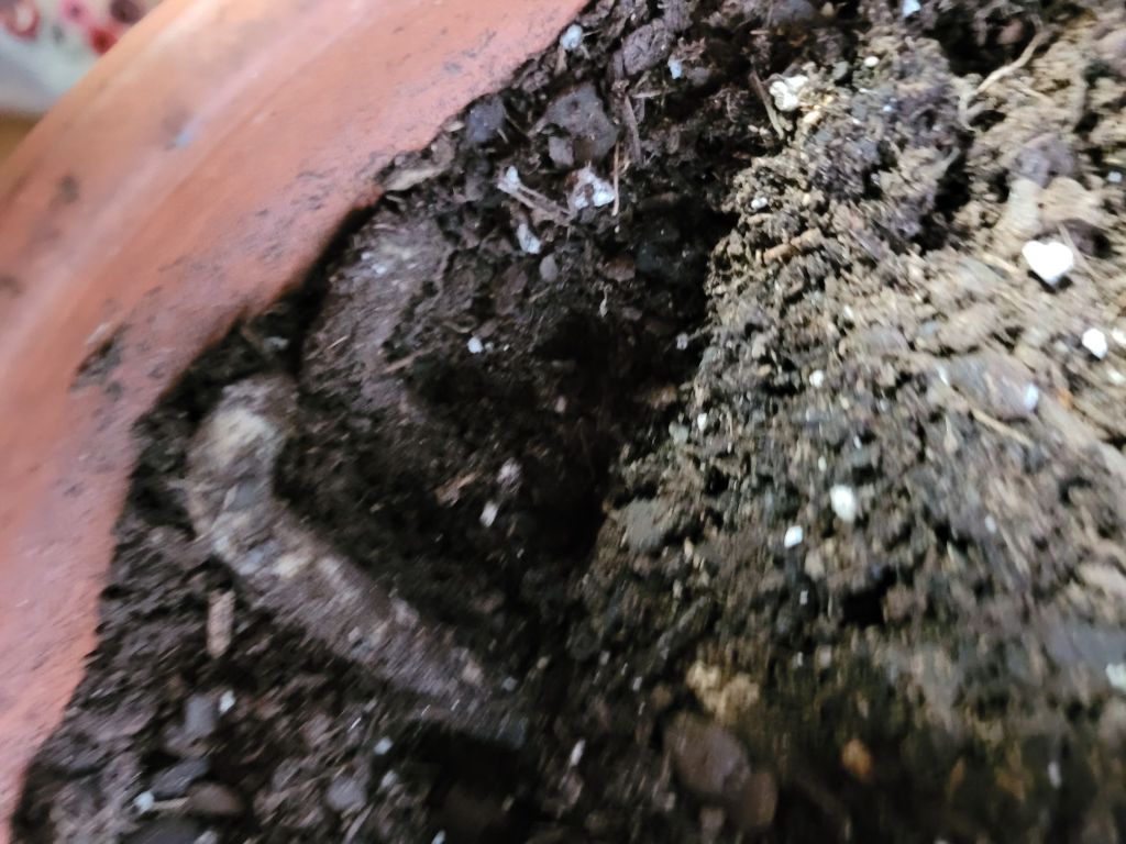 A bulge appeared at the edge of the Clivia pot. I was too busy to investigate before Christmas.