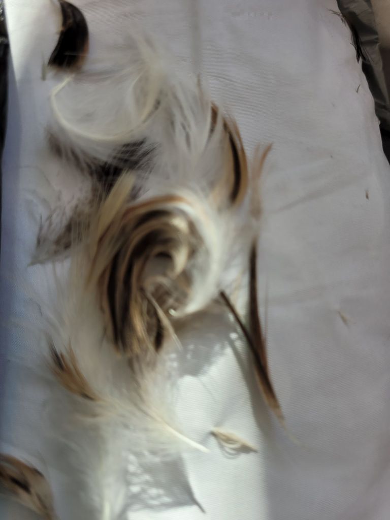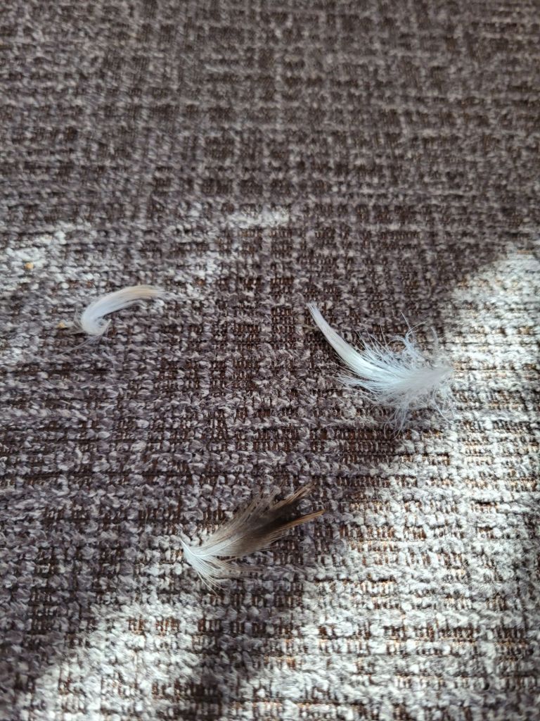 Anytime the deer moves or is held, it sheds a few little feathers.