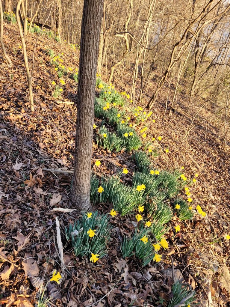It is a tradition that we hike up the hill to see the thousands of daffodils when they bloom.