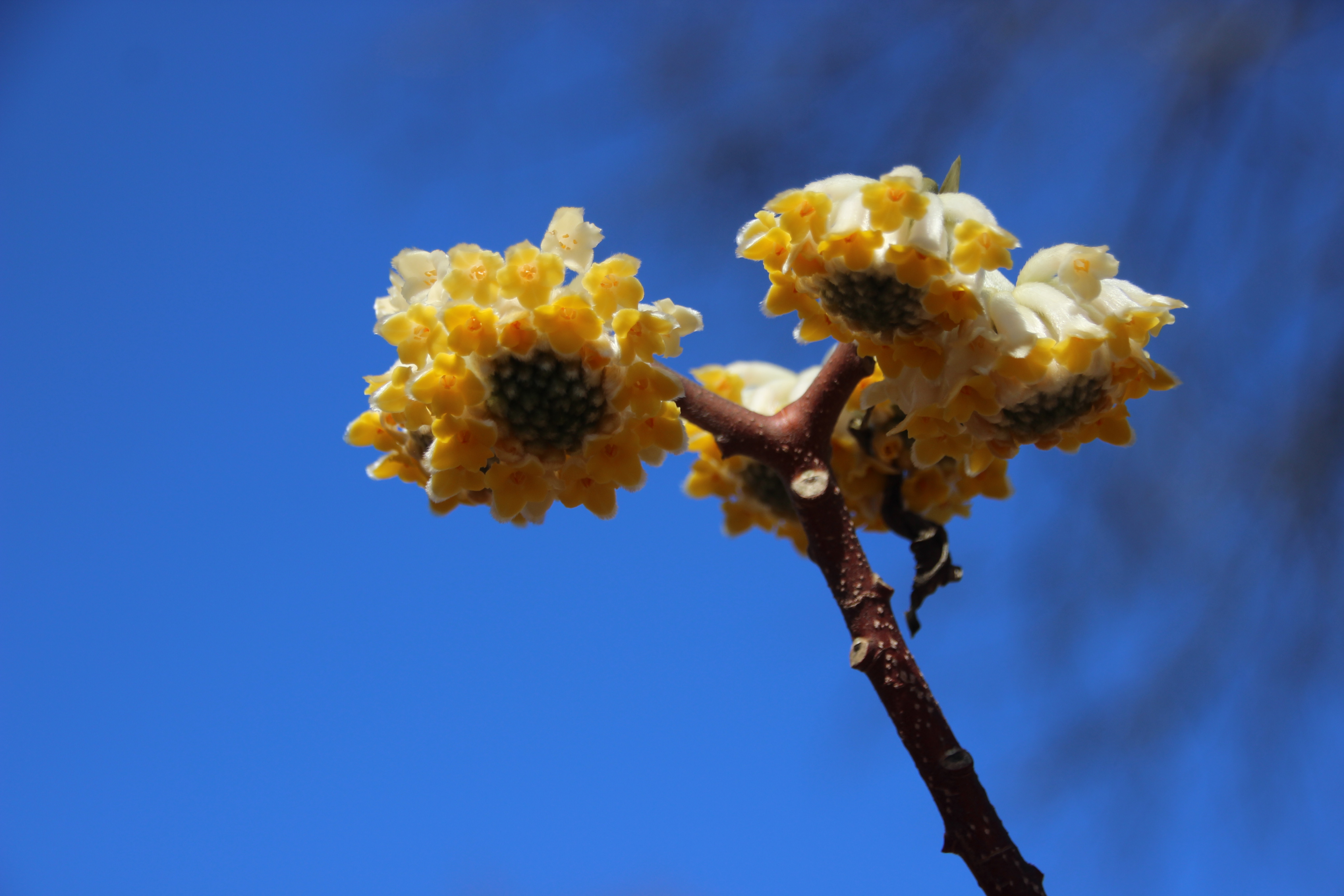 I planted an Edgeworthia shrub on the bank below the deck. The breeze lifts its scent up to my window.