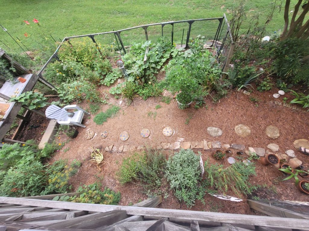 The shade and lack of airflow cannot be a good thing. There is a lot going on in my tiny plot. Stay tuned for birds, butterflies, snakes, squash and pumpkins.