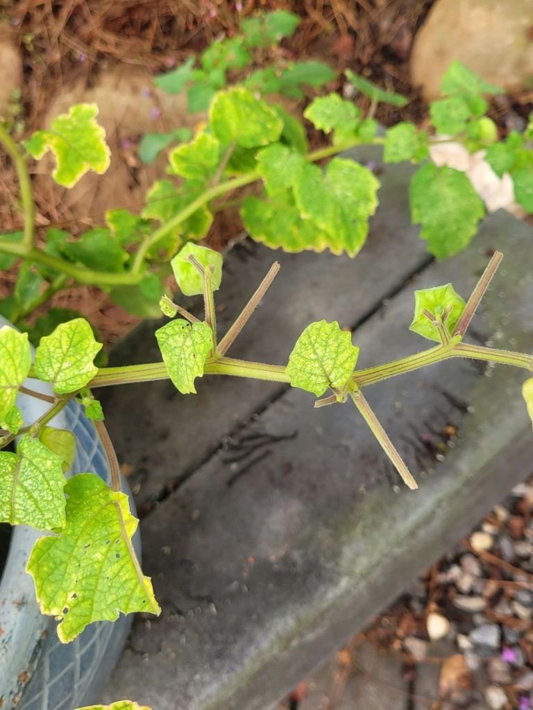I plant ground cherries for my chipmunk, Stubby. He enjoys climbing the plant and picking his own snack. Stubby leaves the wrappers under the plant, so I know he has been there.
