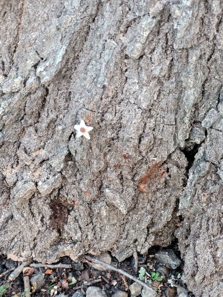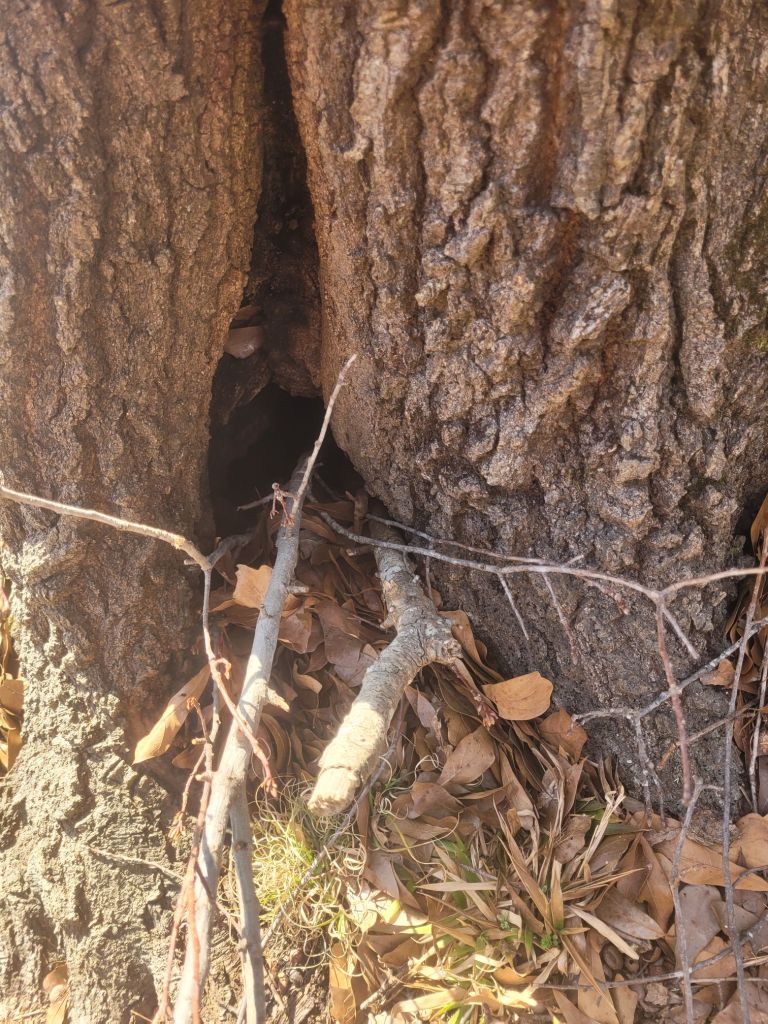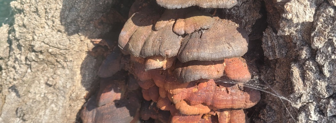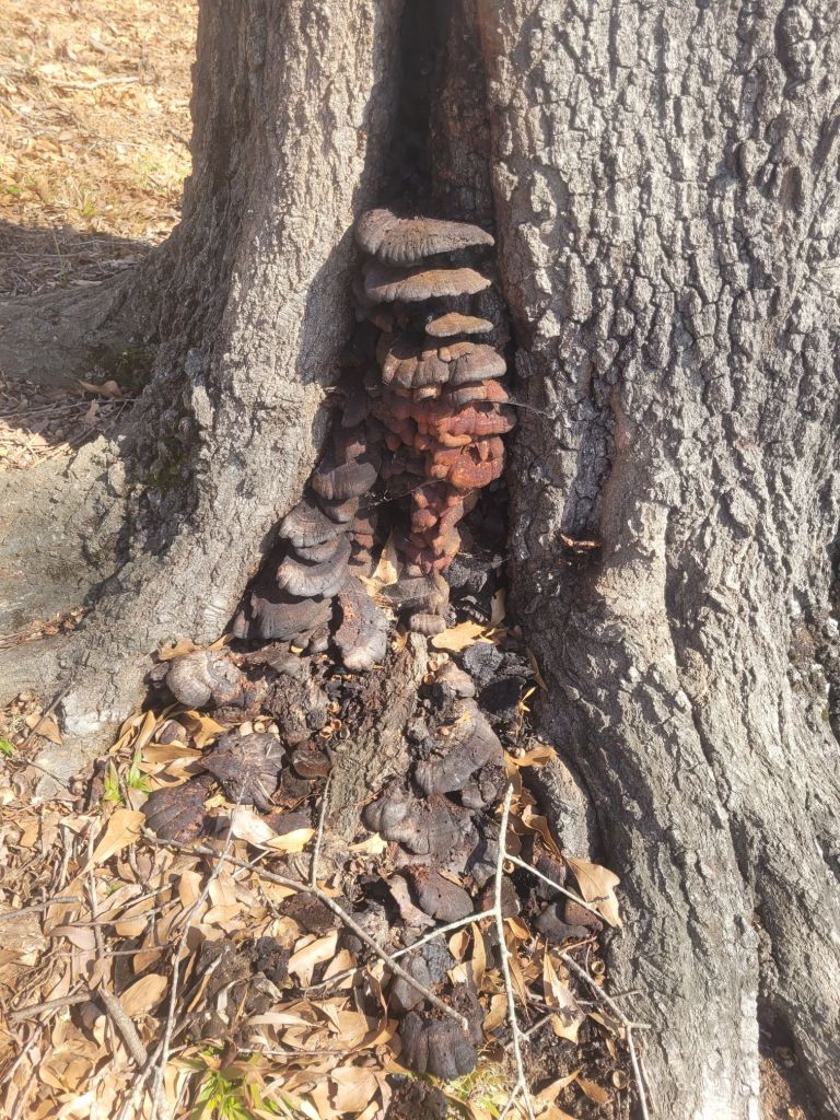 Sometimes the signs are too obvious to ignore. I have been monitoring the conchs at the base of this oak for many years. Next, a species of bracket fungi colonized in a crevasse at its base several years ago and have continually replaced several generations of fruiting bodies.