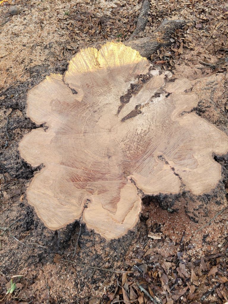 The tree near the ramp had its roots in the septic lines and grew extremely fast. The death at its core was sort of a surprise.