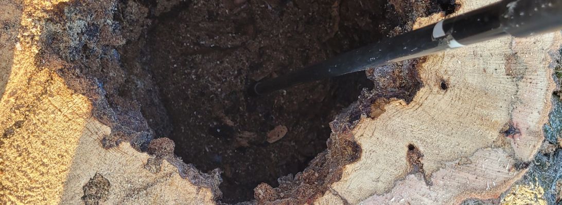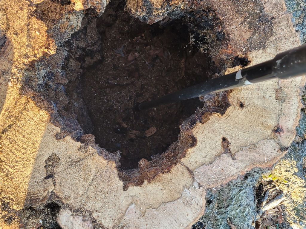 The tree near the water had been showing signs by growing fungi at its base and a hole forming underneath.