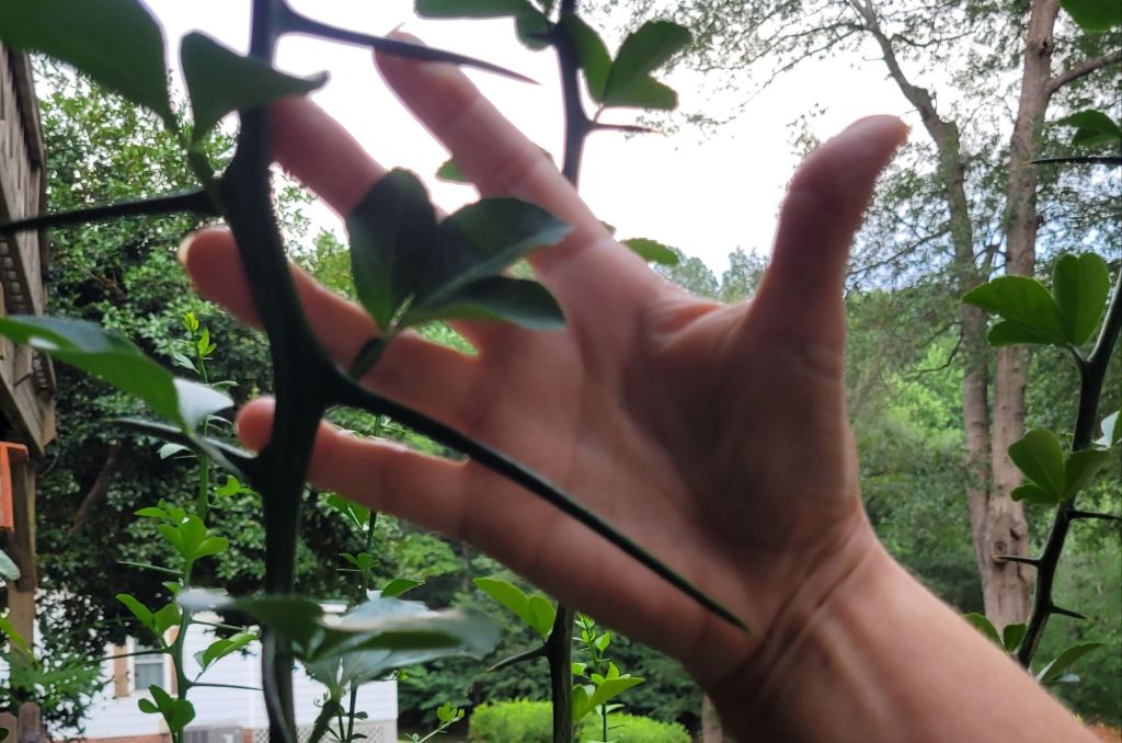 Poncirius: A plant not to be petted.Not invasive since no fruit…yet.
