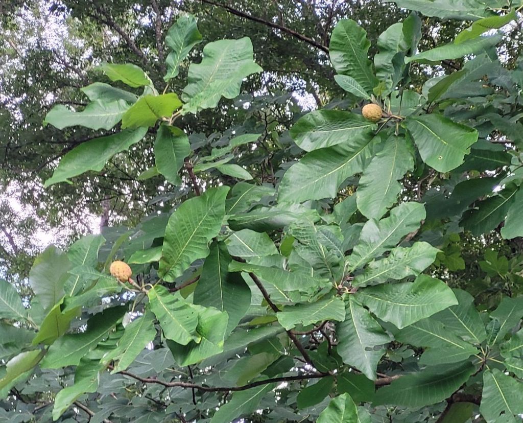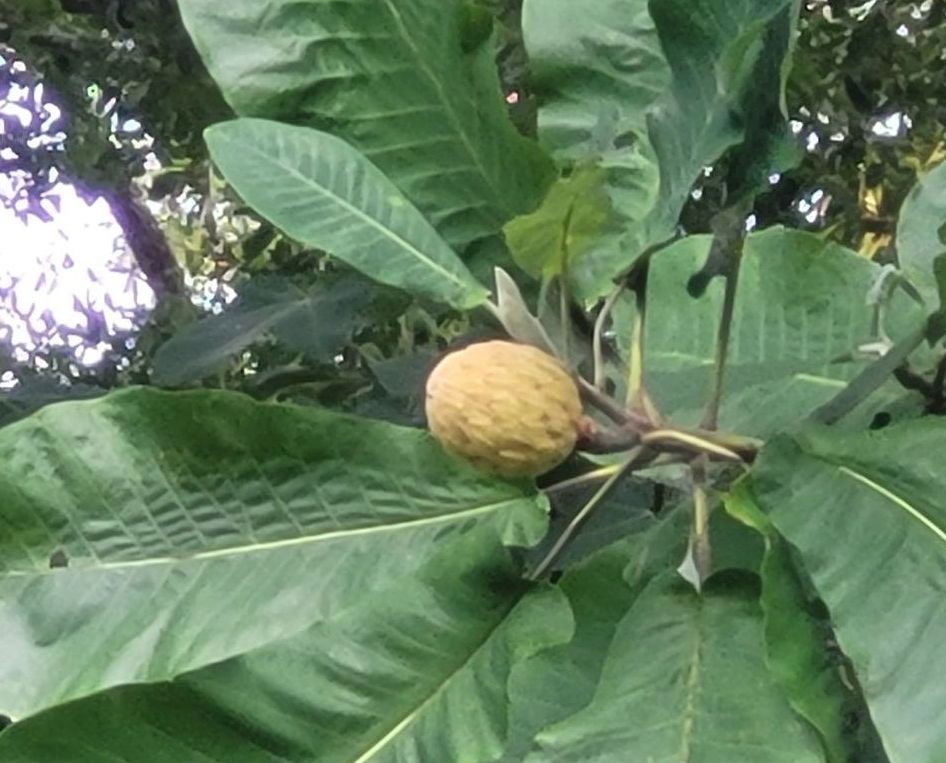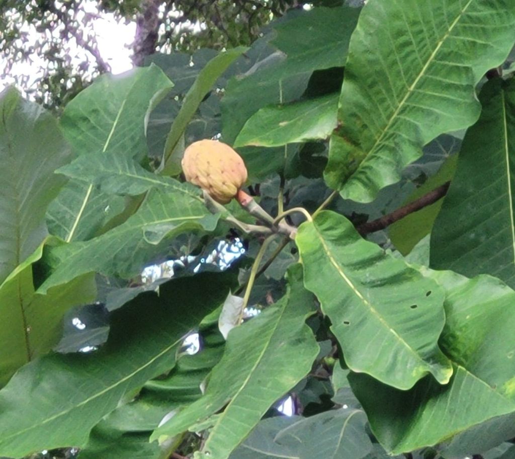 Magnolia macrophylla pods are larger, rounder and fuzzier than the cultivated type that is common in the south, Magnolia grandiflora.