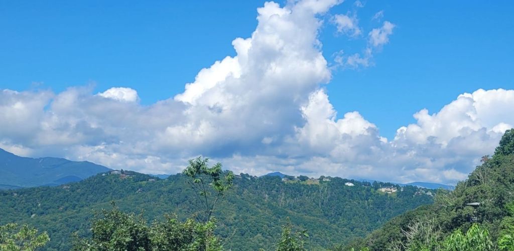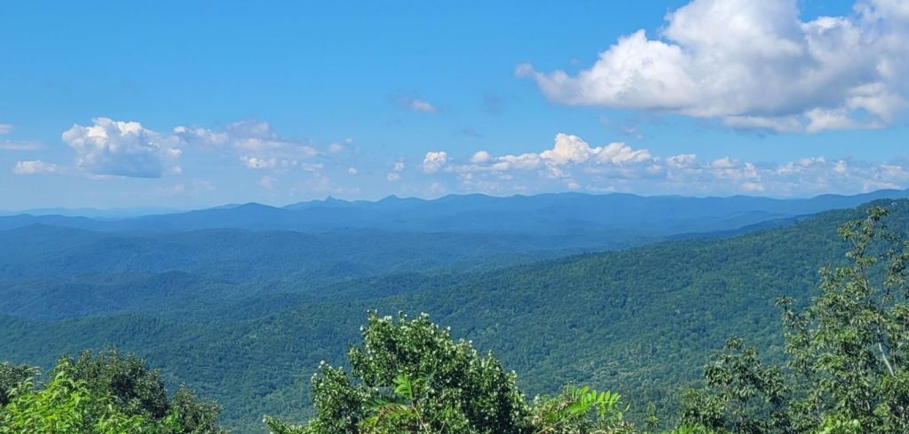 I rode the twisting and turning back roads in the mountains this afternoon. I jumped out of the car to capture the photo. Then I looked behind me to see this chair. It is tucked in the shrubs peeking out at this glorious view.