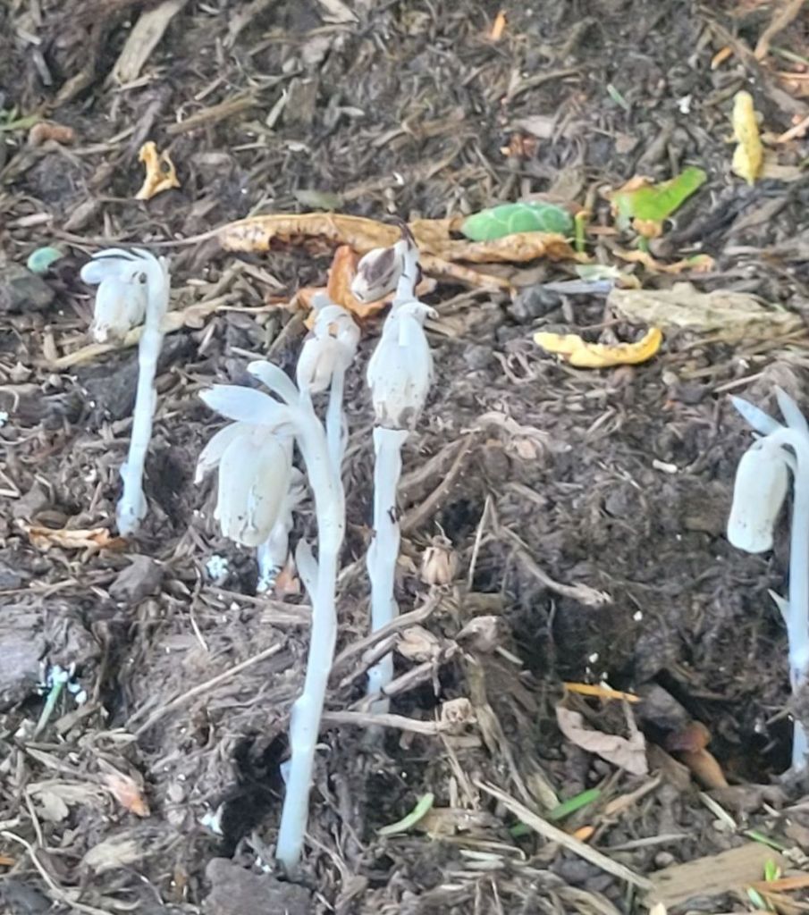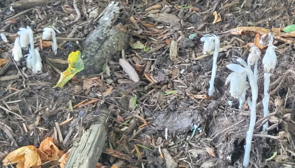 There were many groups of Monotropa uniflora in the shade under some trees. They grow where the fungus and tree roots grow that supporr them. I am glad I spotted these unusual wildflowers.