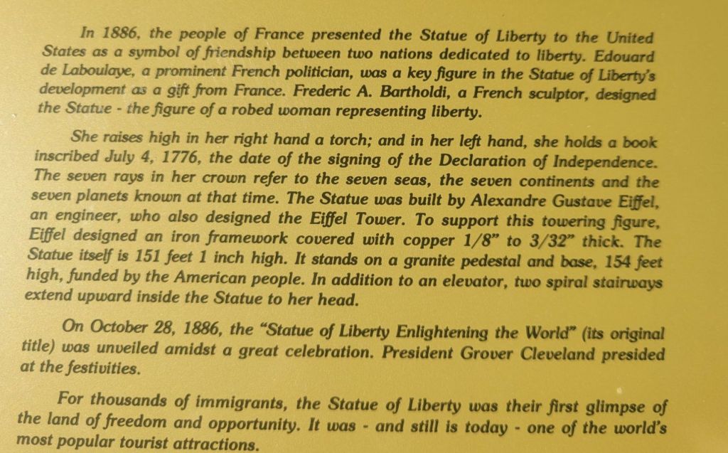 The Statue of Liberty was given by France in 1886 as a symbol of friendship between two nations dedicated to liberty.