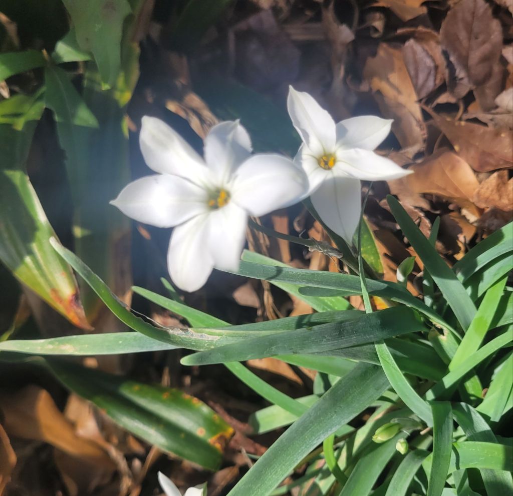 Clusters of Starflower, ‘Alberto Castillo’, Ipheion uniflorum used to be in many locations around the gardens, but the deer herd has nibbled most down to stubs. These stray bulbs were  the only ones with blooms.