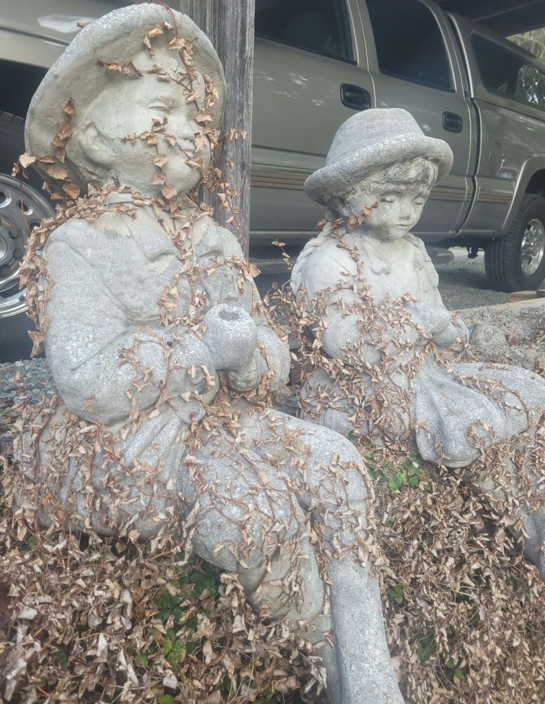 This scene you will recognize. These two statues are named Lily and Moss. I have written stories about them. Today, I will let a photo tell the story.
