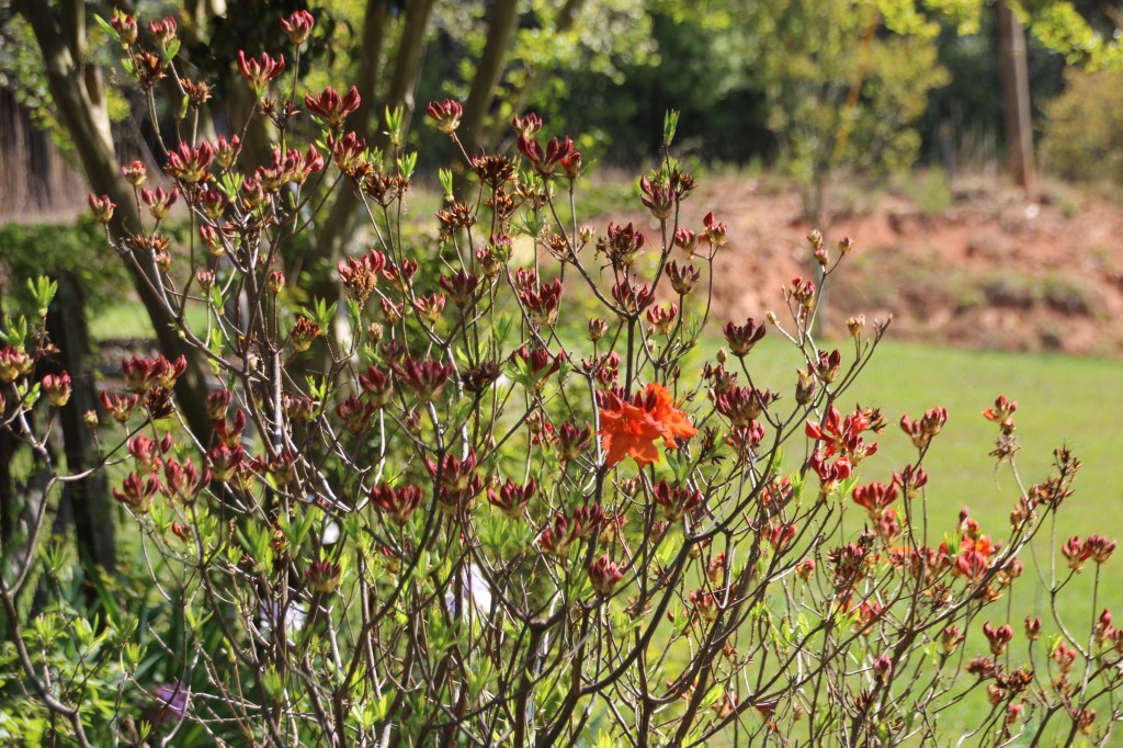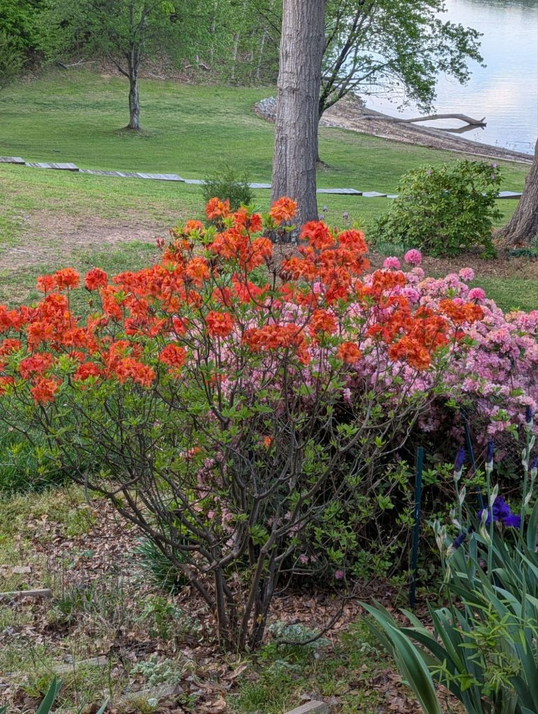 The Flame Azalea ‘Gibralter’ always amazes me. It glows in bright sunshine. This photo was taken in morning. Its deep color looks saturated here.