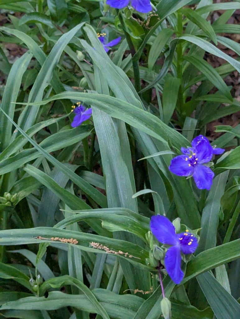 I have read that deer do not eat Spiderwort, but something eats the one in the front yard. This one is in the now bunniless, bunny yard. Safe from whatever eats the other one.
