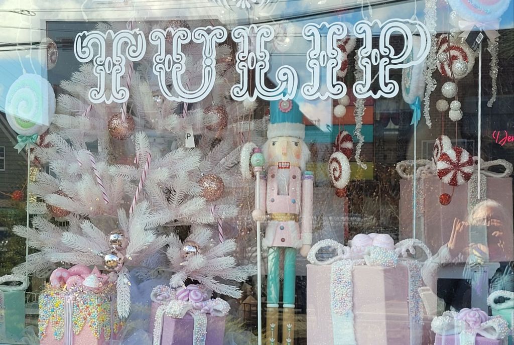 I was drawn closer by the display pink decorations in the window.