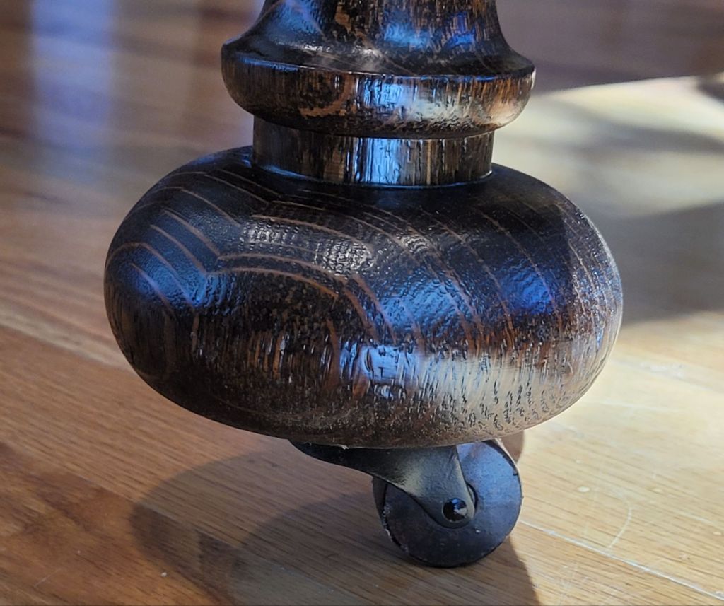 I took photos of all sides, legs, tops, wooden wheels, drawer and back. (which is too pretty to be against a wall).