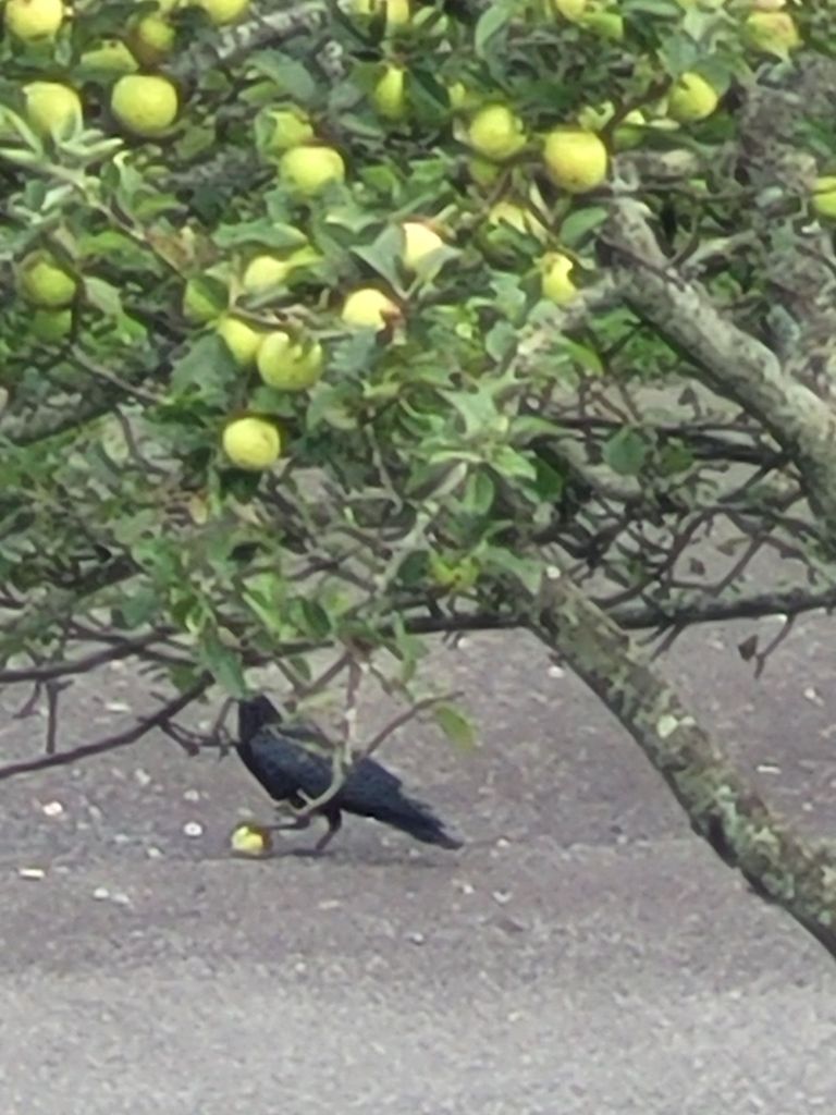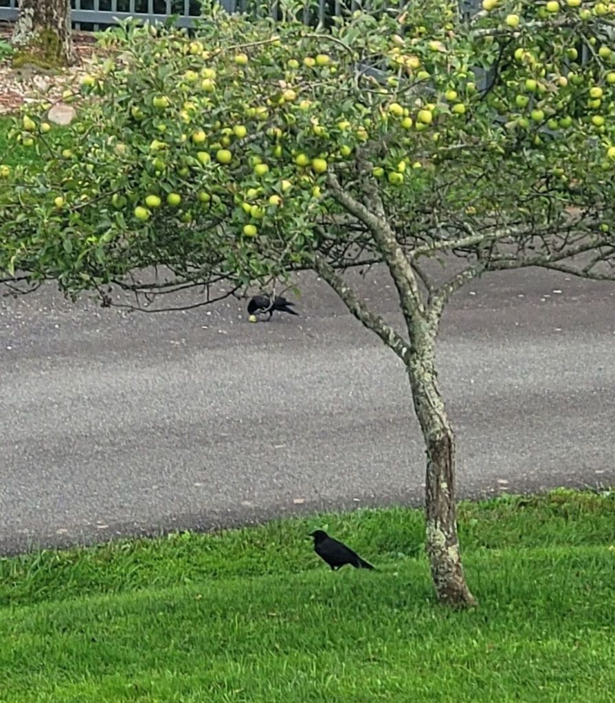 The crows aren’t the only ones enjoying Daddy’s apples.