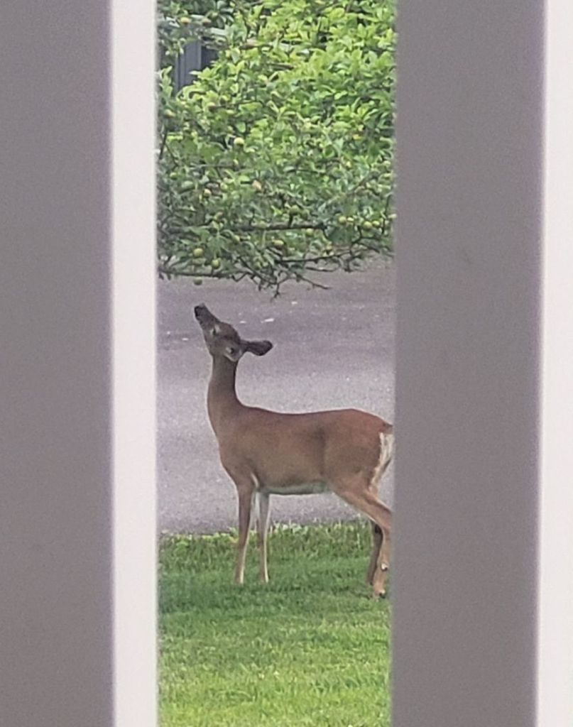I enjoy sitting on the porch watching the crows eating apples off my daddy’s apple trees.