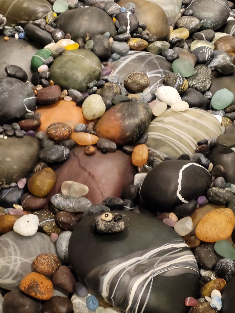 These weren’t just any rocks. These were river rock replicas made of glass by Sarah Vaughn. They looked so real, like a pile of favorite rocks on the northern shores of the Pacific.