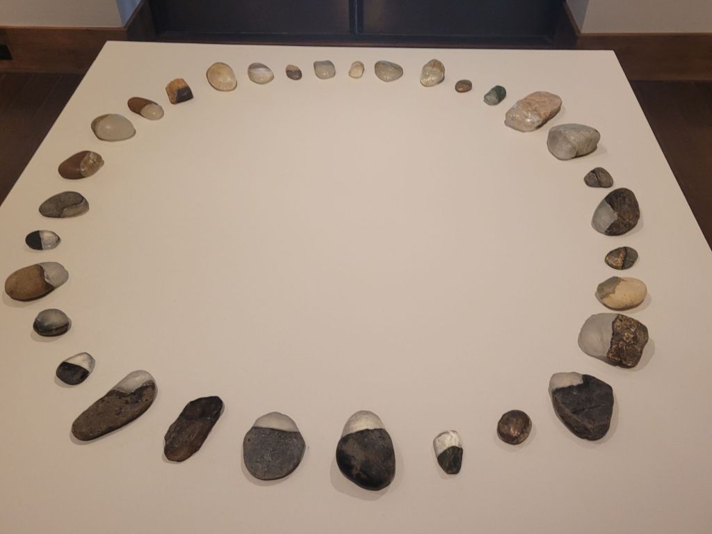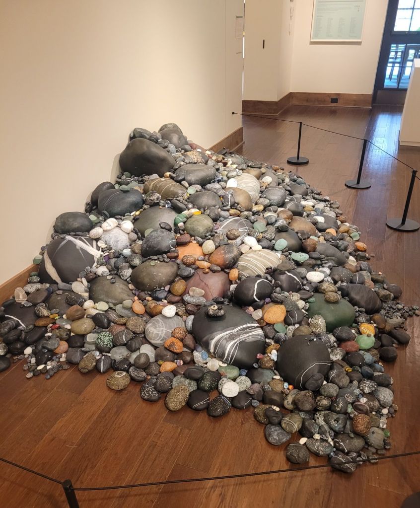 I was quietly perusing the art exhibits at a local museum when I turned a corner to find a big pile of rocks in the floor.There was a short little fence around them.